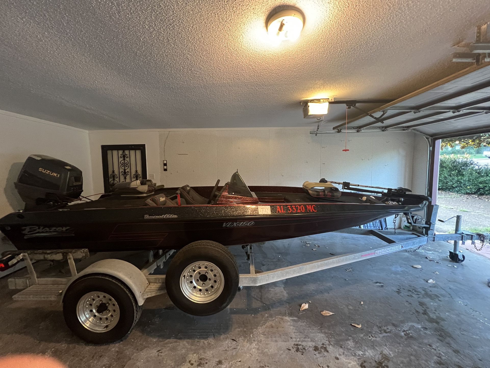 It’s got a Suzuki 140 on it but I think it needs a new impeller. Got a 45 pound tracker trolling motor needs new carpet in bottom deck and front deck. Not hard to replace. Needs new seats on bottom deck as well. Trailer has new tires, trailer is galvanized.