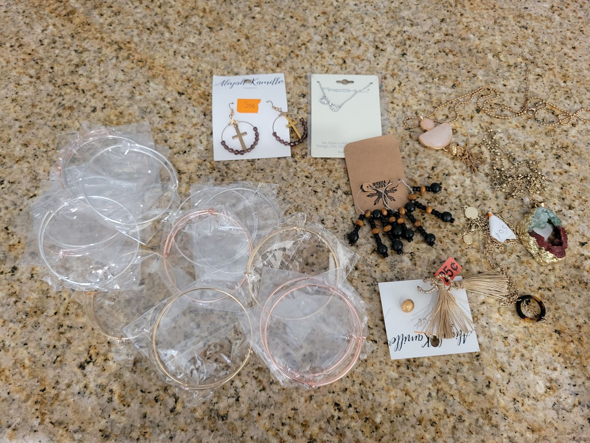 4 necklaces.. 3 earrings and about 13 bracelet makers