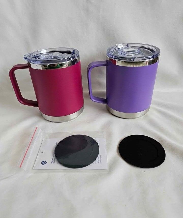 Insulated Coffee Mug with Lid, 12 oz Travel Coffee mug with handle Double Wall Stainless Steel Travel Tumbler Cup, Spill Proof (Fuchsia Red or Purple) NEW. Instocks 2 colors available: Fuchsia red or Purple Please message me which color you prefer Available for ship and pick up in Sheridan and Evans Streets Kindly checkout my other listings and make bundle items for great bargains