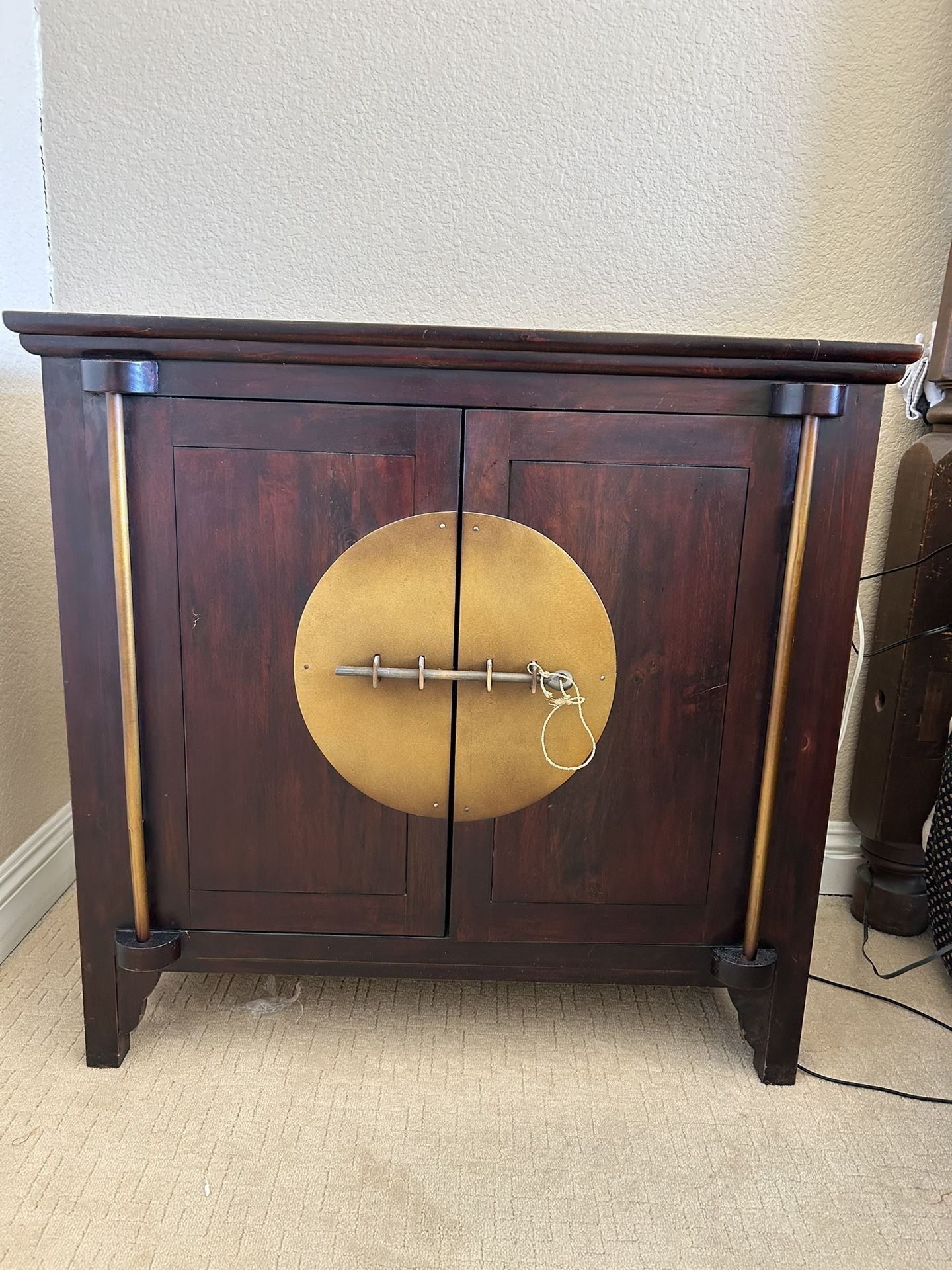 Beautiful, real wood cabinet. Can be used as a nightstand, cabinet or end table. 35 1/2 w X 17 1/2 d X 34 h