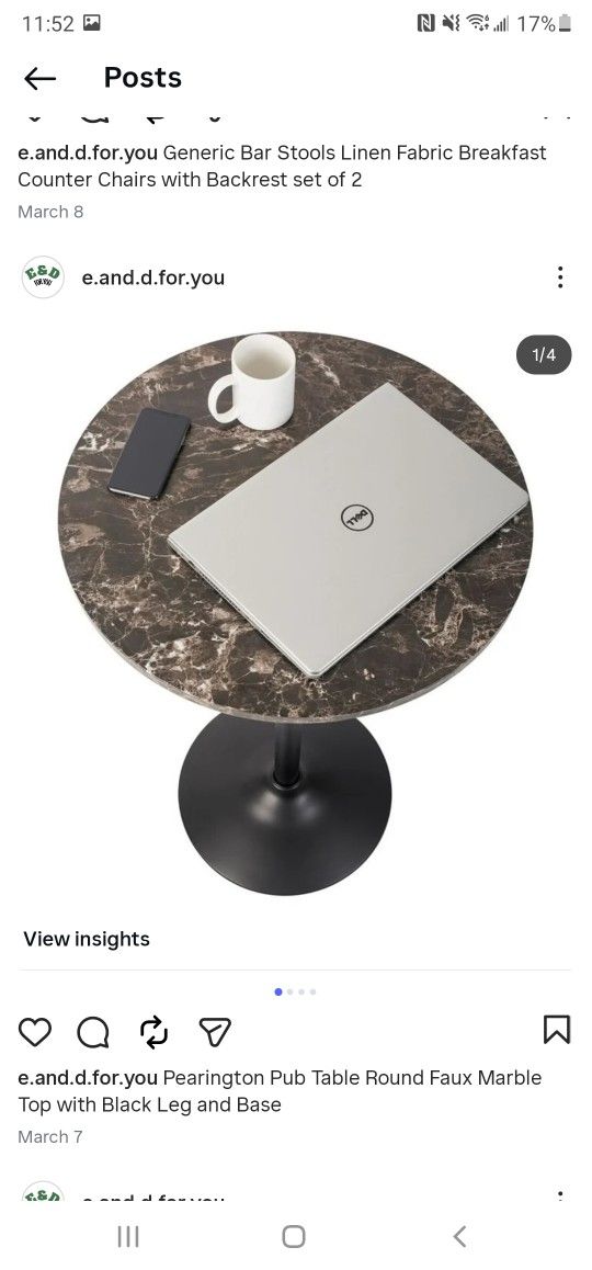 Pearington Pub Table Round Faux Marble Top with Black Leg and Base