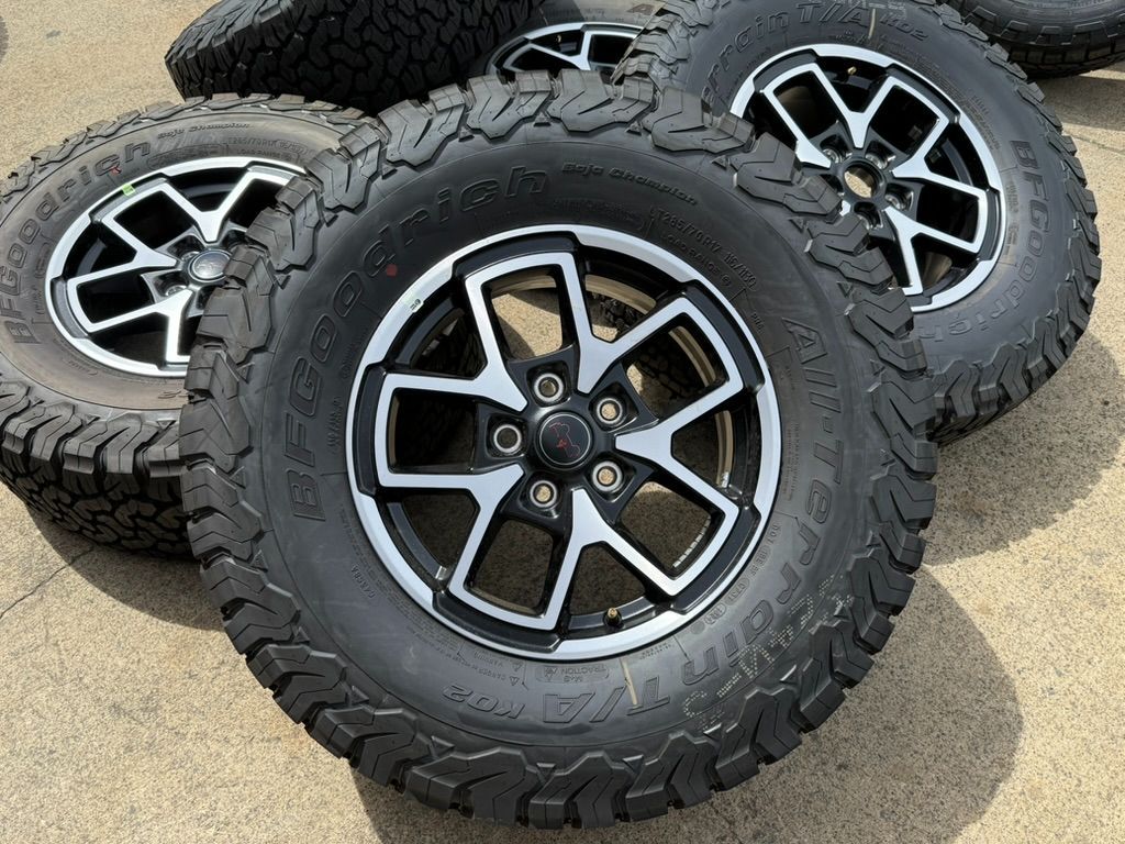 PICK UP IN EAST SAC AREA OR BAY DELIVERY 🚚 new take offs with under 15 miles on them. ABSOLUTELY NO DAMAGE. OEM 2025 Jeep Wrangler Rubicon Wheels and tires. rims are clean, no damage. 5x new BFGoodrich All Terrain KO2 LT 285/70R17 load range C. LIKE NEW tread 100% 5X5 bolt pattern fits: 2007-2025 Jeep Wrangler , Jeep Gladiator, Jeep Grand Cherokee price is absolutely firm