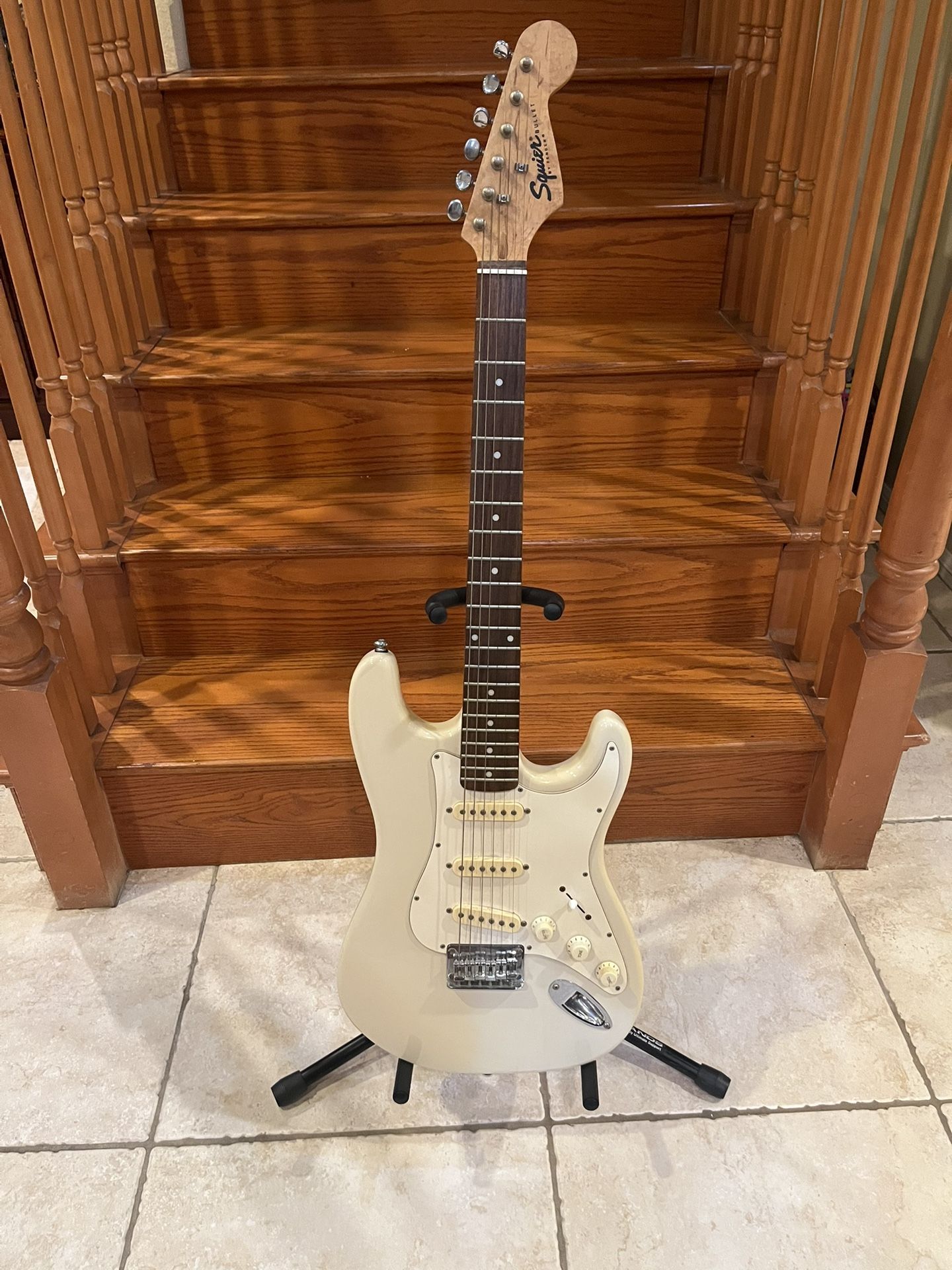 Beautiful basically brand new vintage Squier Strat. Gorgeous white finish they no longer make these Squiers in. setup very well and tested and working perfectly and ready to play