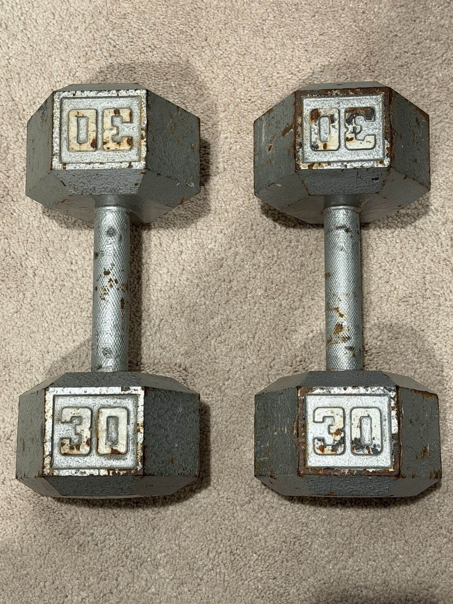 Cast Iron Hex Dumbbells 30lb Set Pair