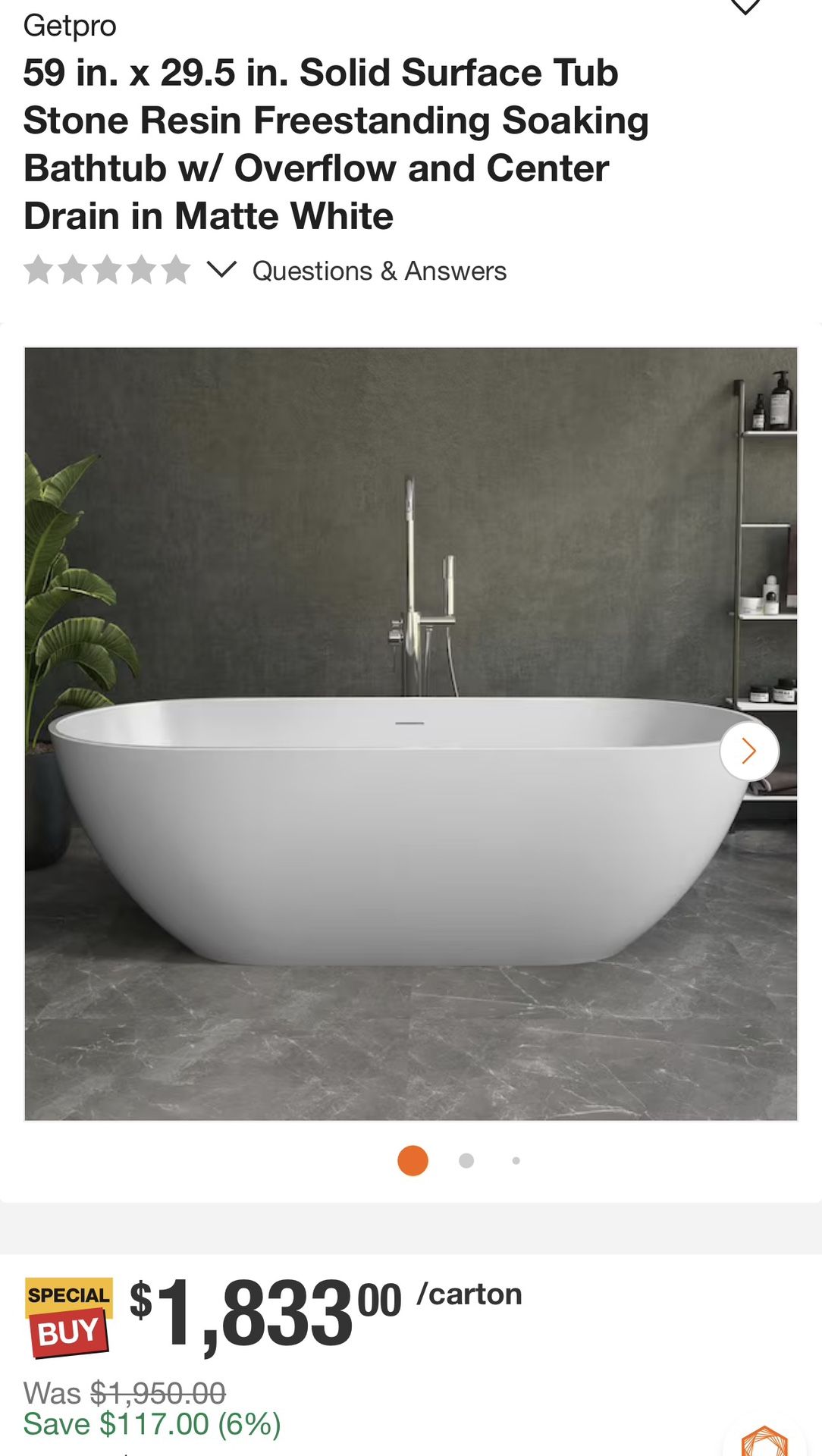 sb96559mw Dimensions Basin Length (in.) 45 Basin Width (in.) 19.88 Overall Height (in.) 21.6 Overall Length (in.) 59 Overall Width (in.) 29.5 Soaking Depth (in.) 14.13 Details Bath Therapy Type Soaking Color Family White Color/Finish Matte White Drain Location Center Exterior bath shape Oval Faucet mount Floor Included Drain, Hose Material Stone Resin Maximum Number of Occupants 2 Person Product Weight (lb.) 309.54 lb Tub Design Straight Top Tub/Shower Features Integral Drain, Predrilled Drain Holes, Predrilled Overflow Holes Water capacity (gallons) 63