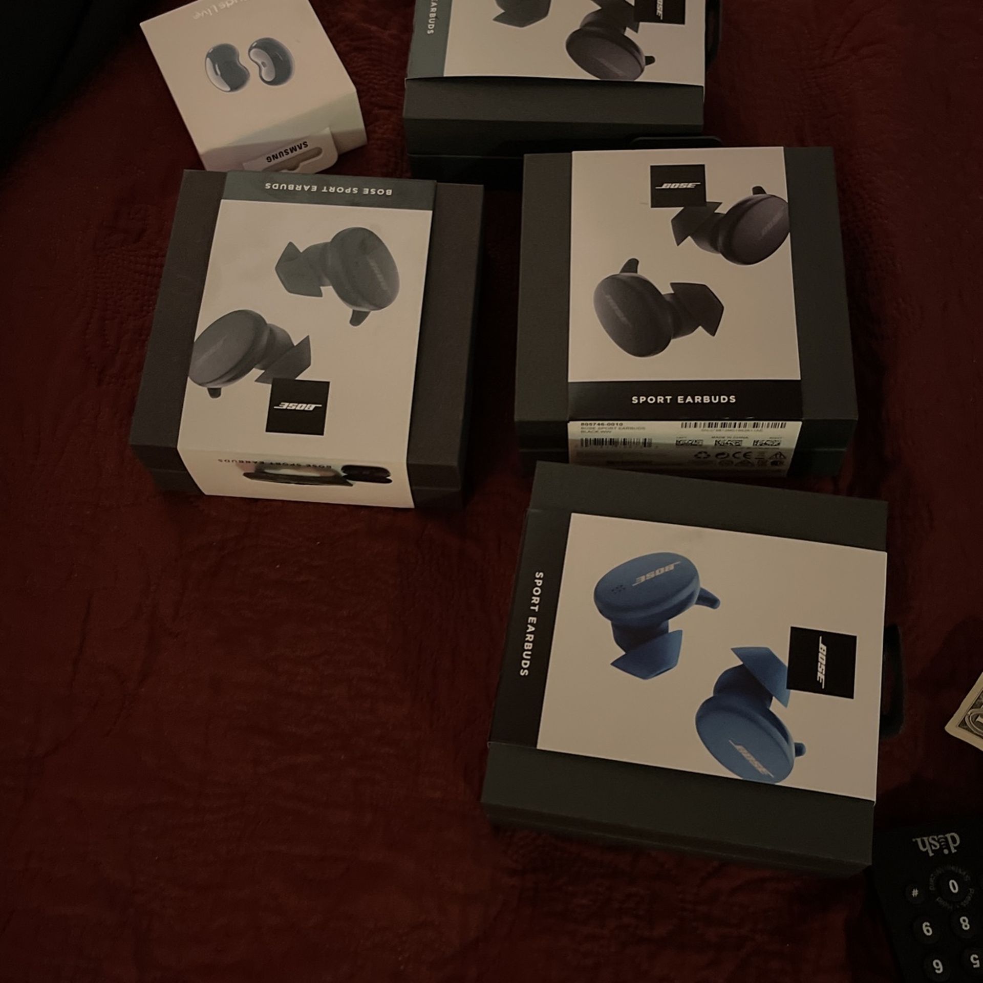 Bose Sport. 3 Black One Blue. 1 Samsung Bud Live 1 Tempo