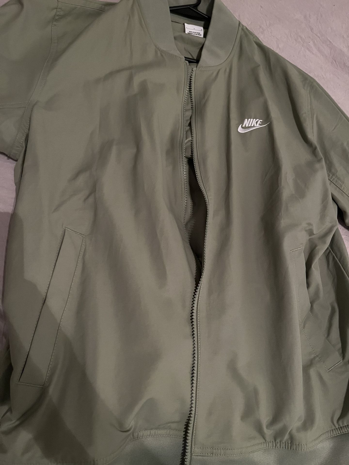 SIZE LARGE. Nice color, clean OLIVE green. Two pockets. Brand New, never worn! A little too big on me. Matches with everything.