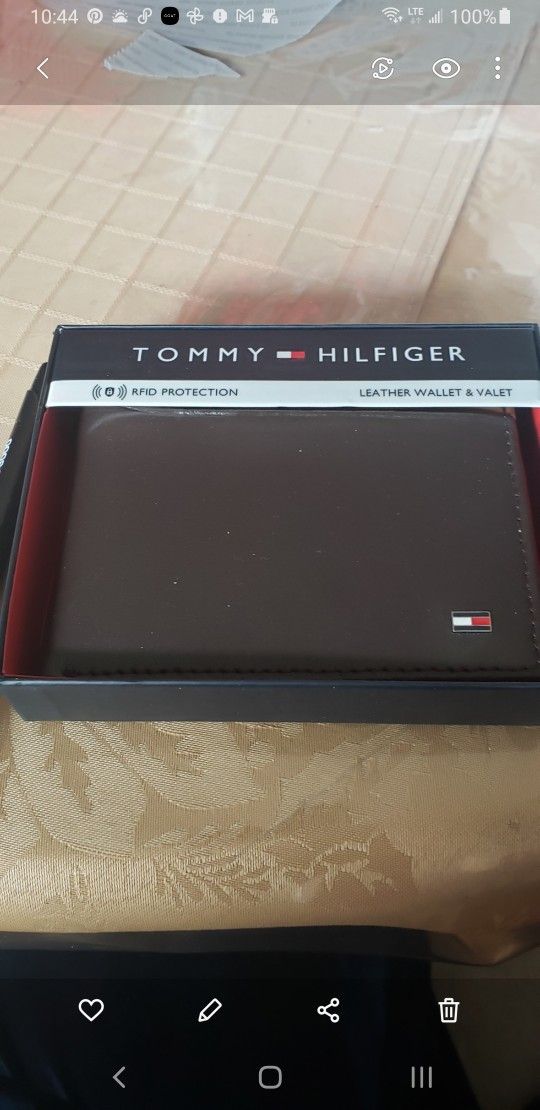Tommy Hilfiger men brown leather 9 slot .1 slip pockets,,1 id windows with thumb slider,RFID Protection with original box includes