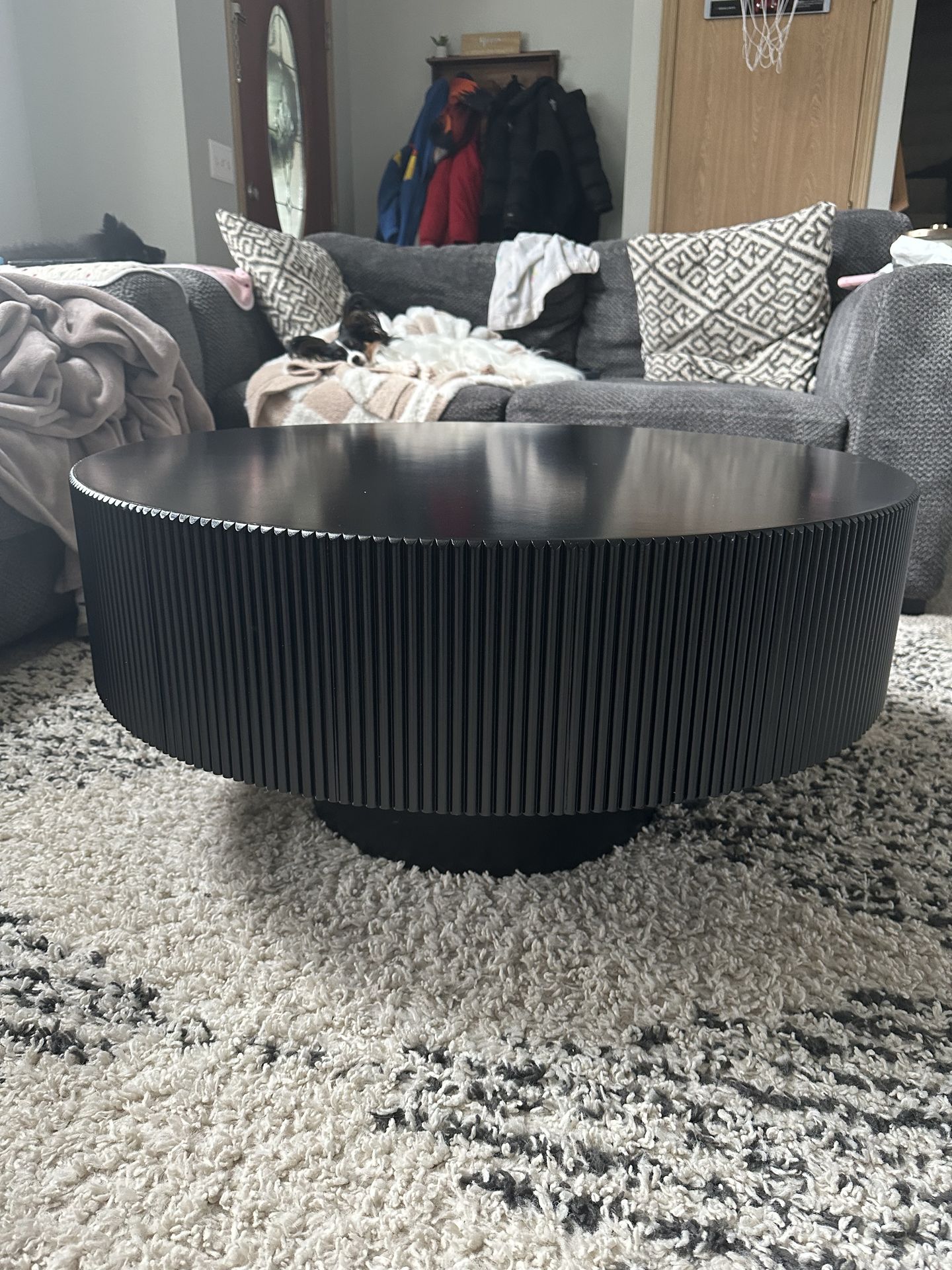Round black coffee table