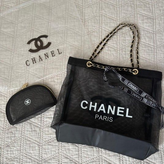 Gift with purchase Designer Mesh Tote & mini bag bundle (GWP) Sells for $160 Black w Gold hardware