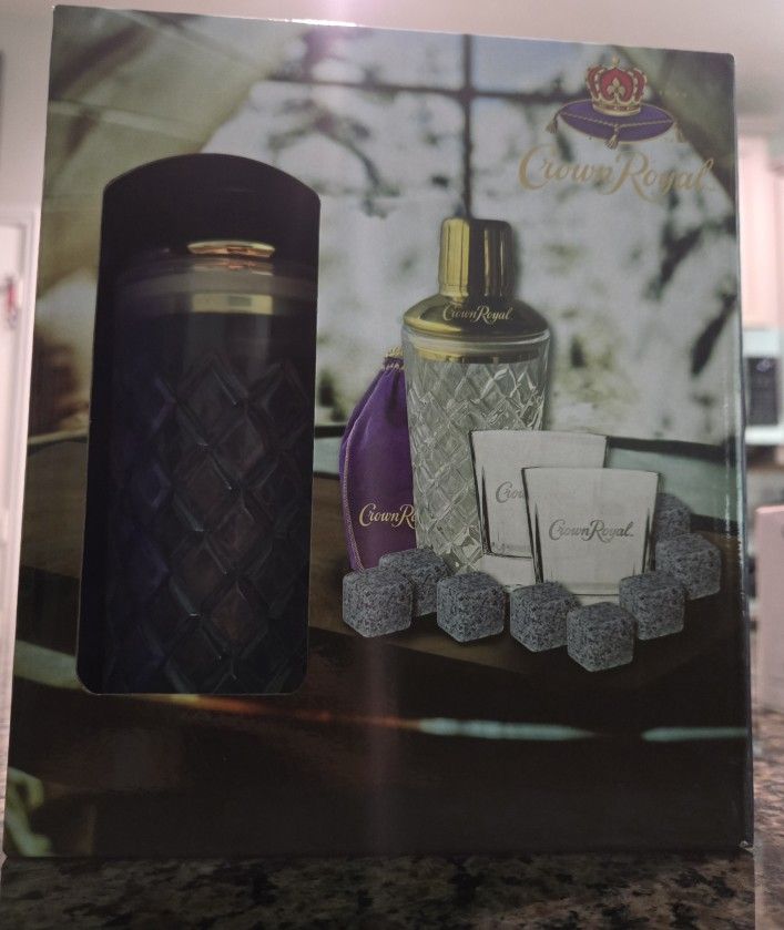 DIAMOND GLASS COCTAIL SHAKER 2 WHISKEY GLASSES 1 VELVET BAG 8 WHISKEY STONES