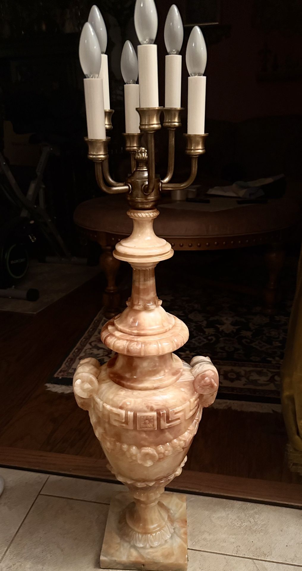 Vintage Midcentury large Onyx Lamp– 36 inches Hand-Carved Solid Stone with Unique Opposing Colors and Timeless Sculptural Beauty