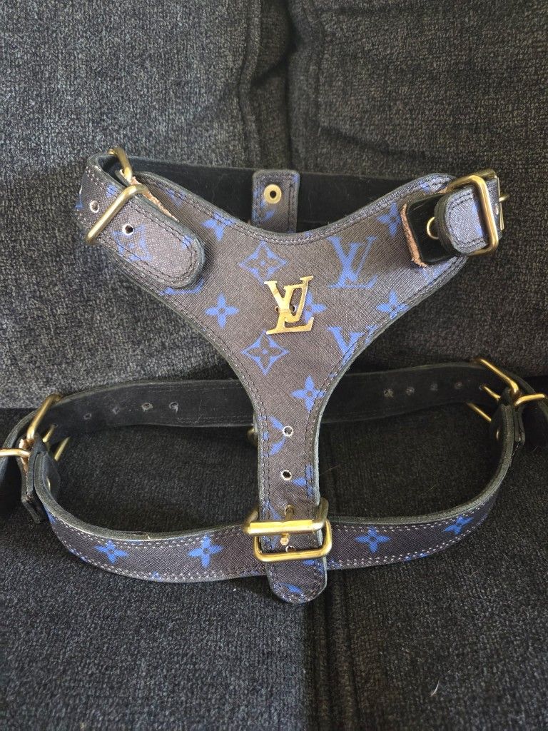 Brand new leather dog harness with leash Fits 30-35lbs $100 firm If interested message me