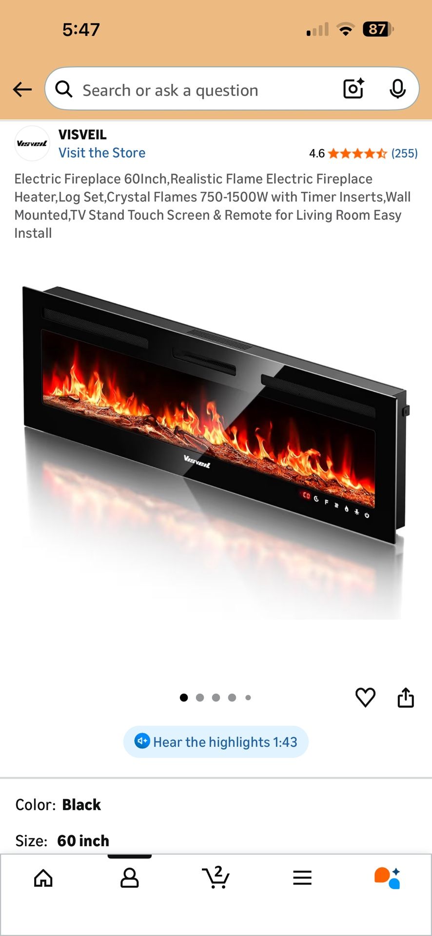 Bought it from Amazon. Never used. Going with different options. $200 /OBO Electric Fireplace 60Inch,Realistic Flame Electric Fireplace Heater,Log Set,Crystal Flames (contact info removed)W with Timer Inserts,Wall Mounted,TV Stand Touch Screen & Remote for Living Room Easy Install