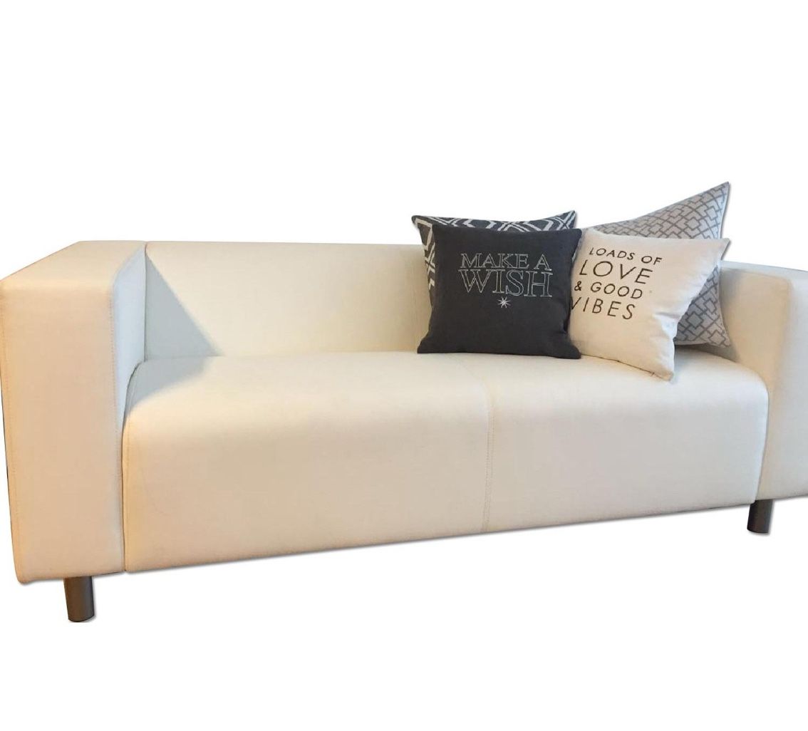 Free Delivery! Ikea 3 seater Off white Fabric sofa. Width 54.5” Height 26.5”, Depth 34”. Great Condition!