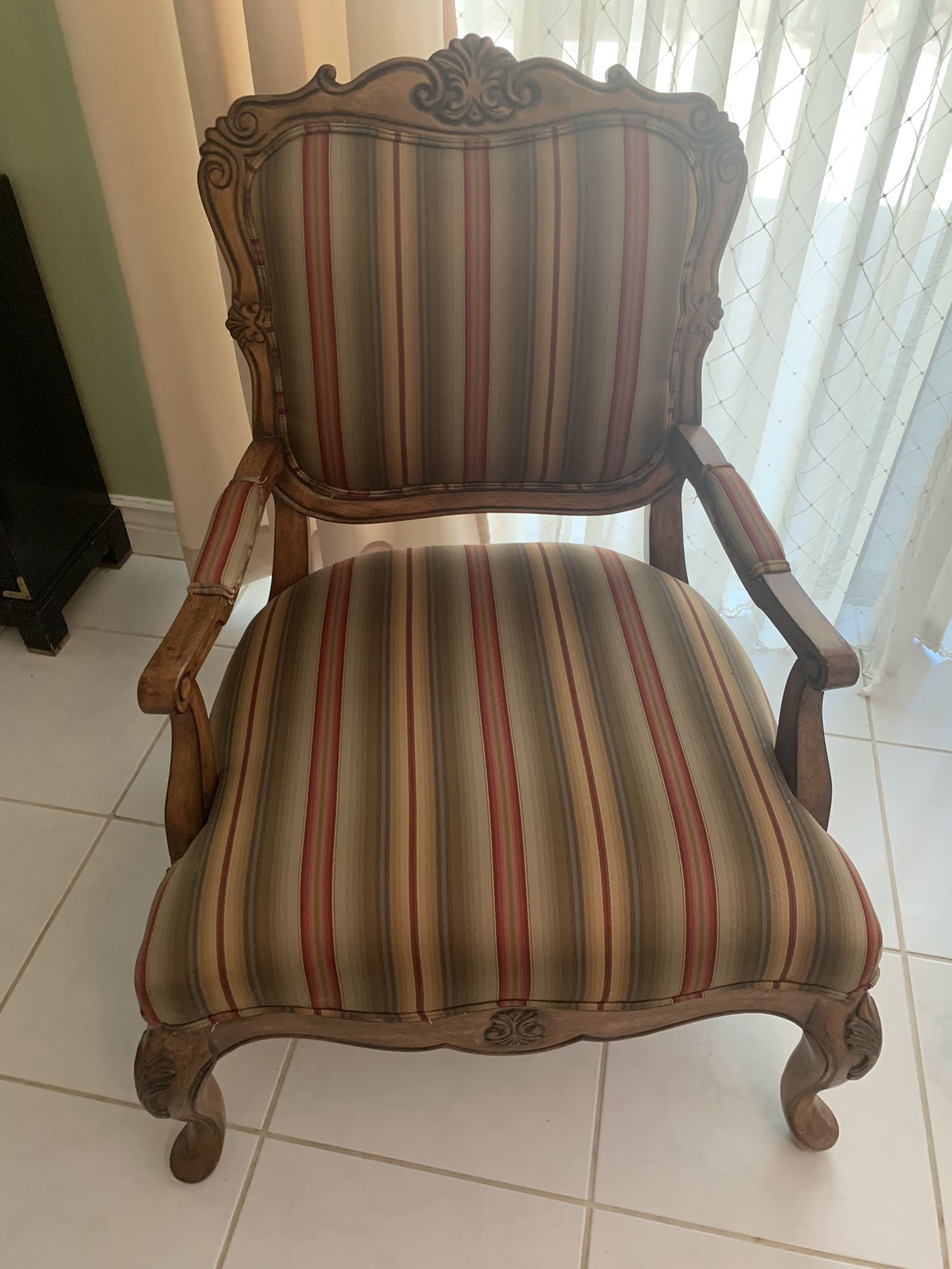 GREAT CHRISTMAS GIFT ‼️ - PRICE DROPPED. Wooden arm chairs with silk fabric with strips