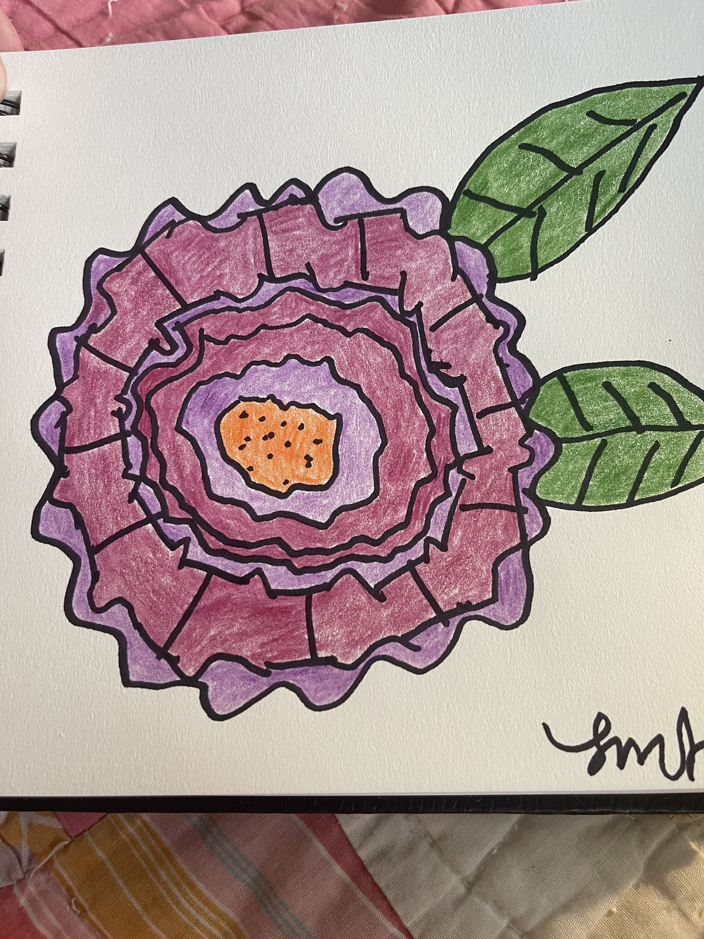 Vibrant Colors Colored Pencil Flower Drawing