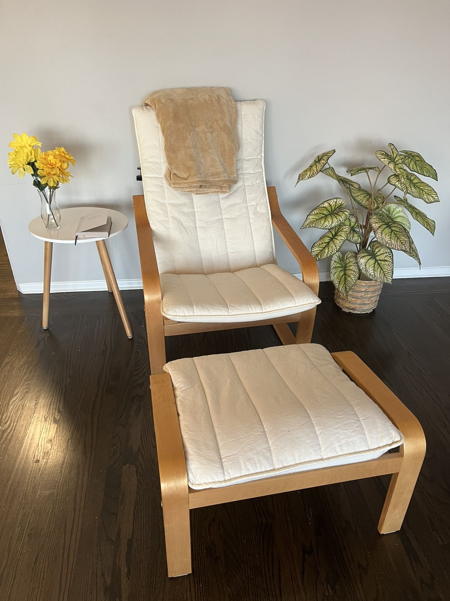 These two ivory Poang Chair and Ottoman cushions are like new. Bought them with the chair at Habitat for Humanity recently, but decided to get a colorful chair cushion vs the plain ivory color. Excellent condition.
