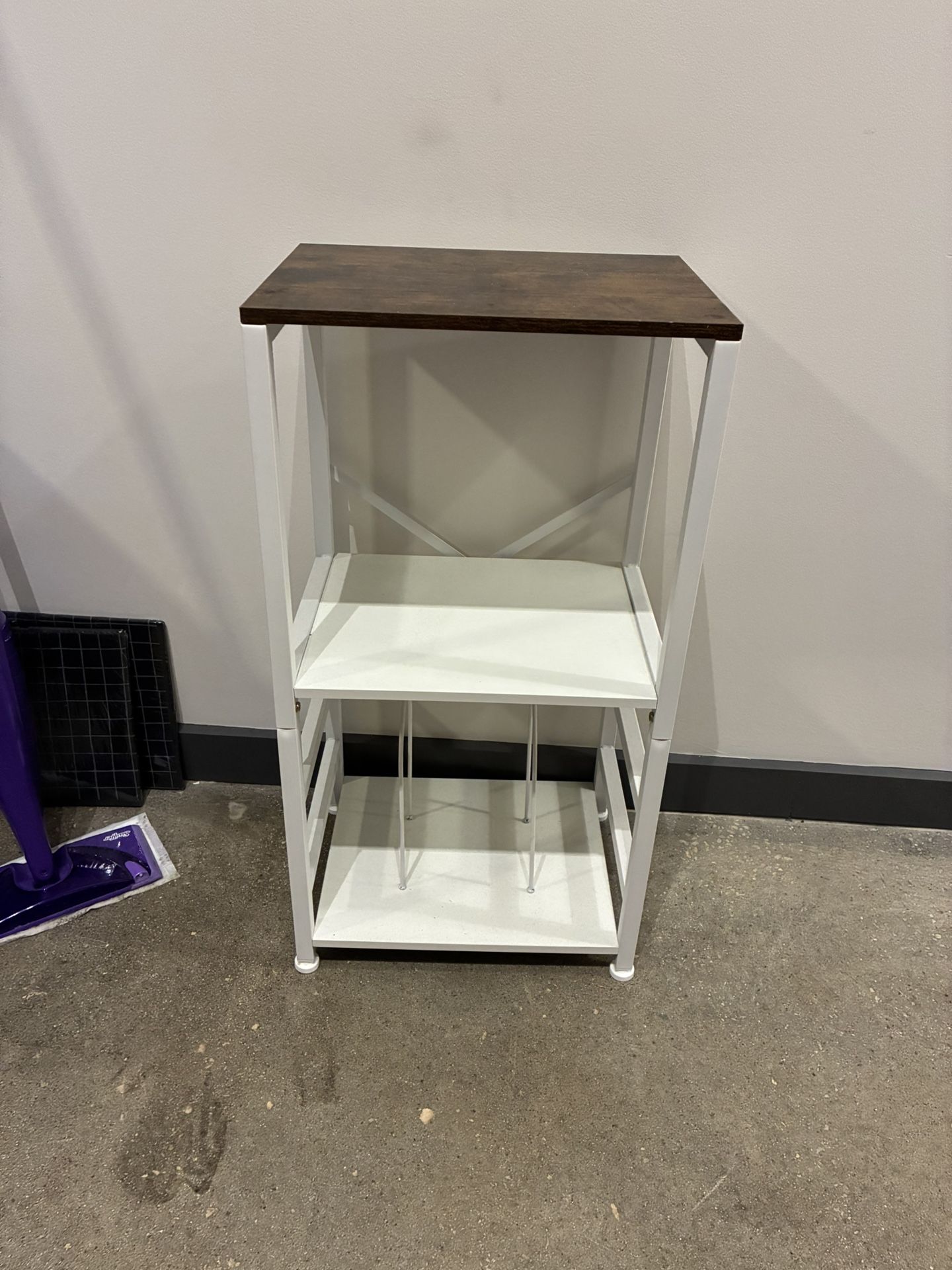 Small shelf stand. Faux wood top. Metal legs. Kitchen/dining table. Delivery available 16”x12” 30” tall $10 cash OBO