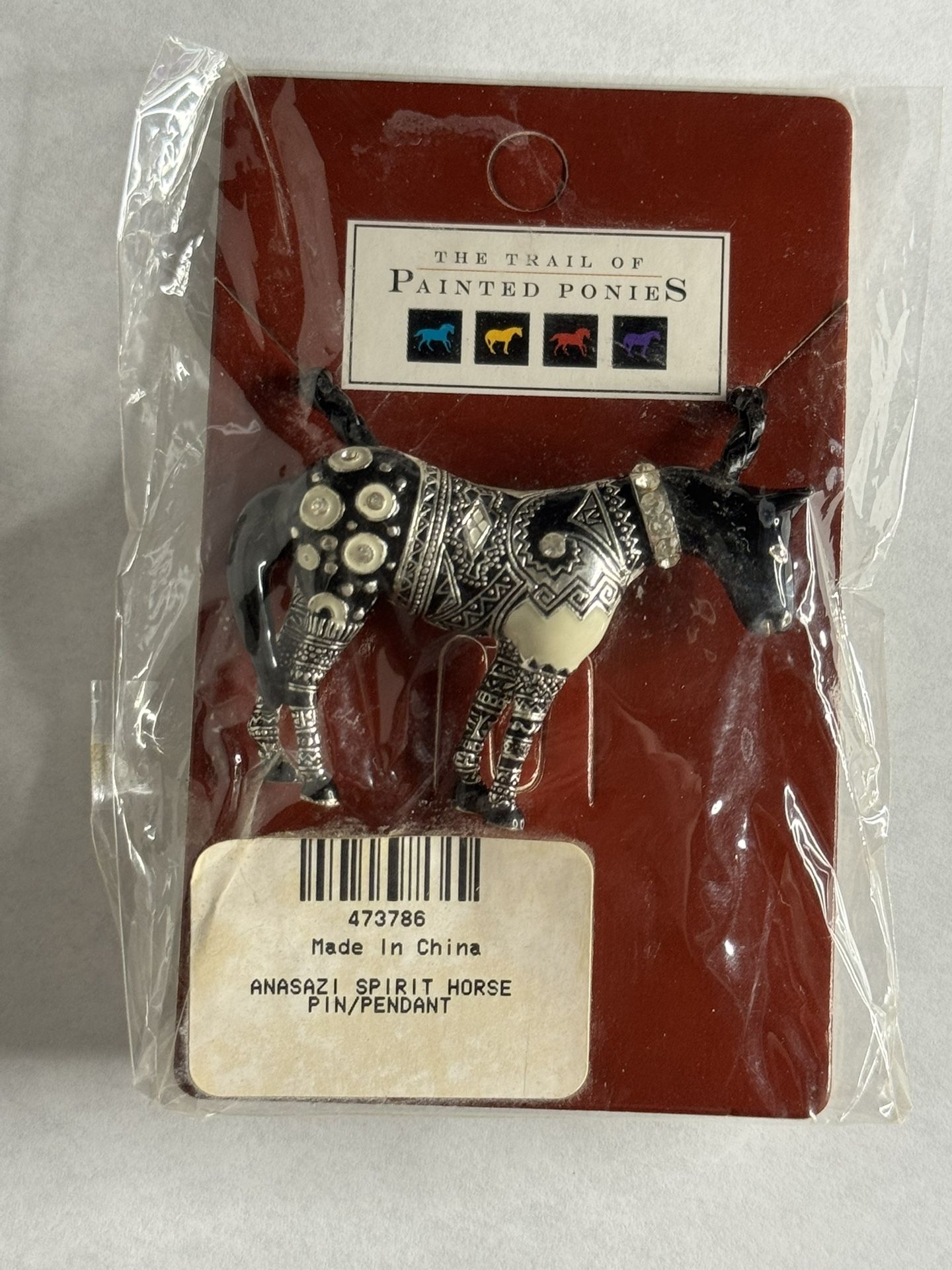 "Anasazi Spirit Horse" TOPP Enamel/Rhinestone Pin/Pendant - Trail Of Painted Ponies stamped on piece - Hand crafted enamel with hand set crystals - Includes a 16-18" braided leather cord adjustable with lobster claw - Includes the Pony's individual story card. - Perfect addition to your Trail of Painted Ponies Collection or as a gift for the Horse Lover/Collector. - 🚭 Non-Smoking Home - 😺🐶