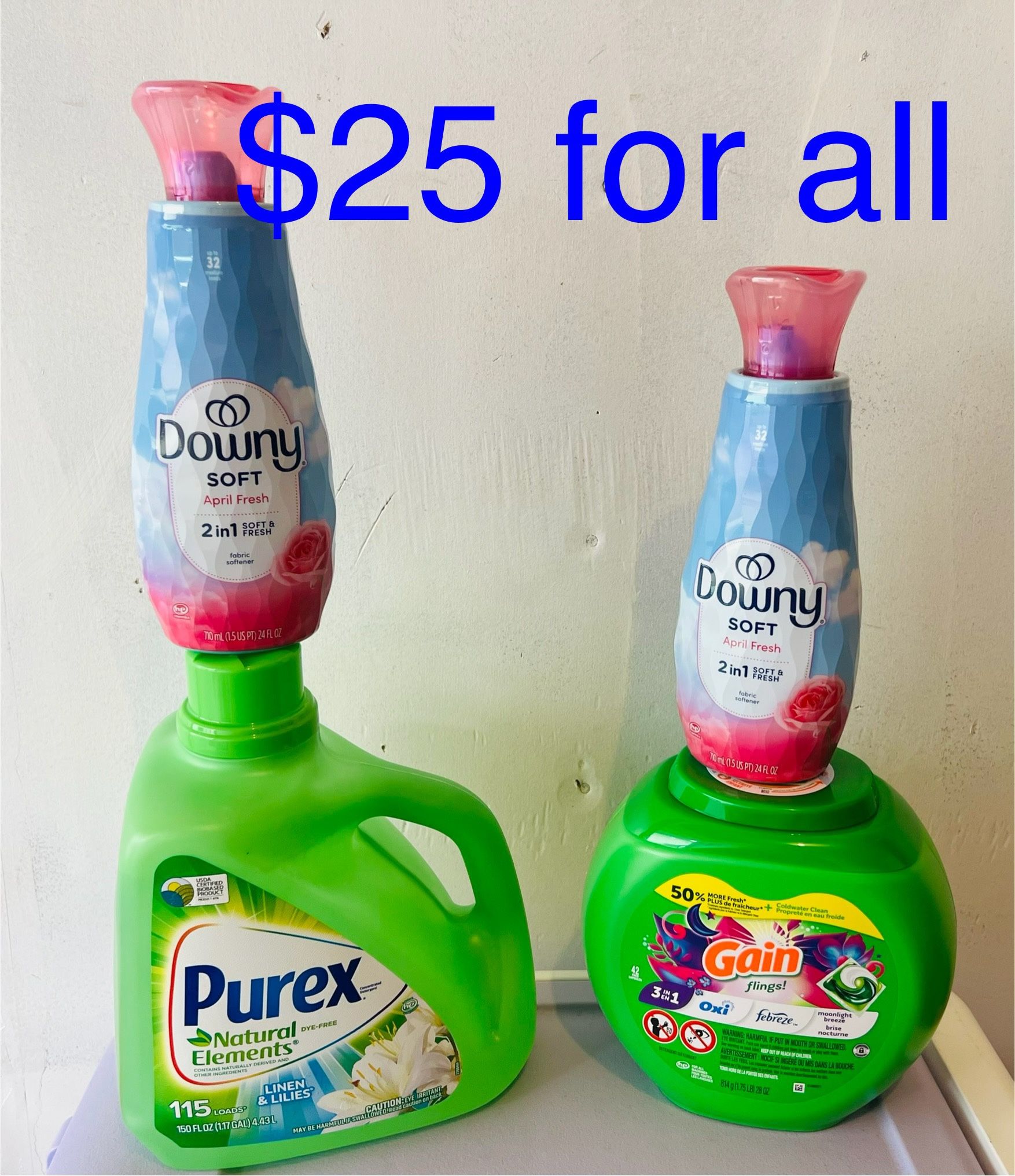 Pick up only‼️ east side San Jose 🔵2 downy softener 24 oz each 🔵1 Gain 42 capsules 🔵1 purex detergent 150