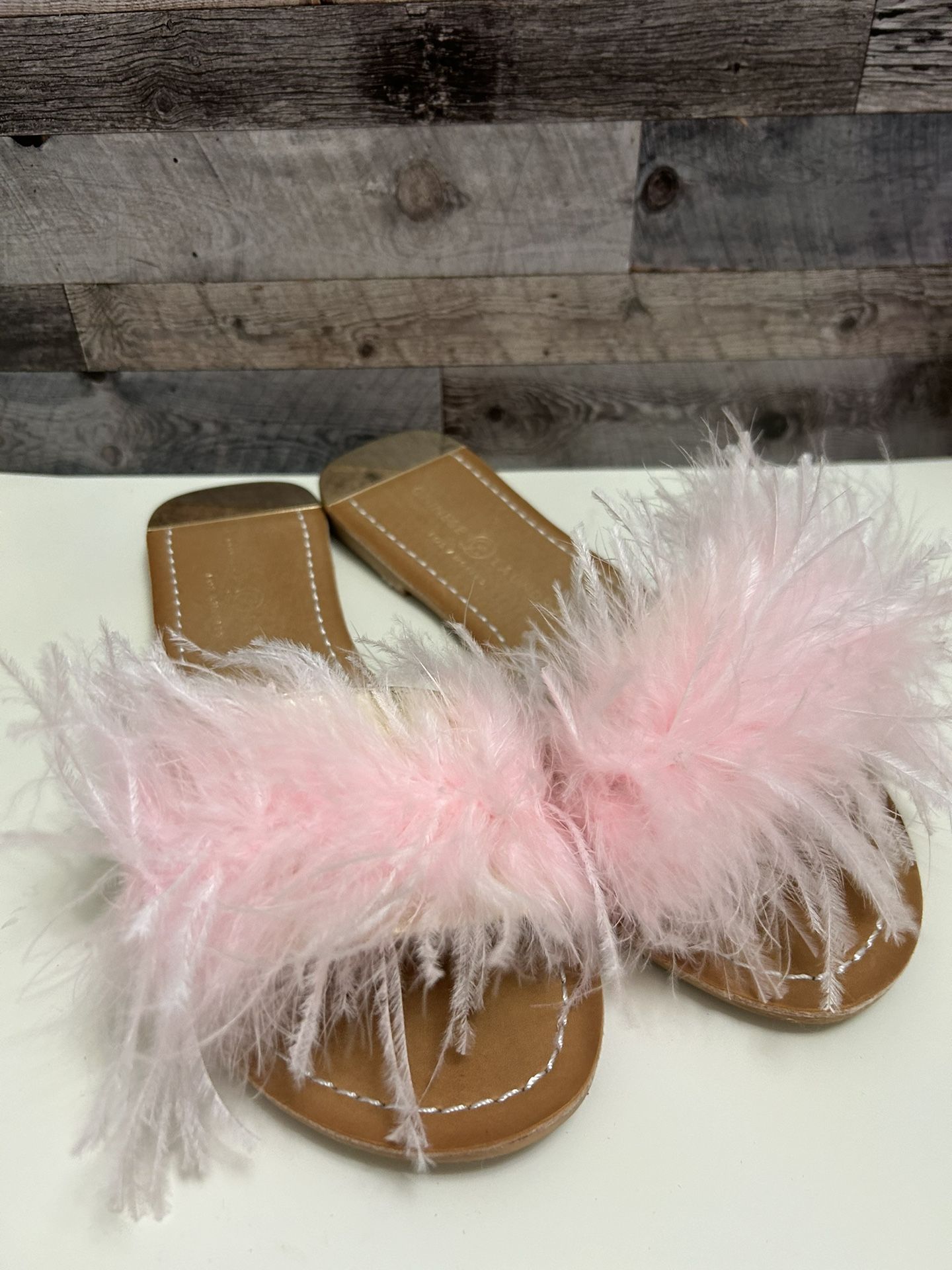 Chinese Laundry Womens Zoey Marabou Feather Flat Slides Sandals Pink Size 8.5 With box