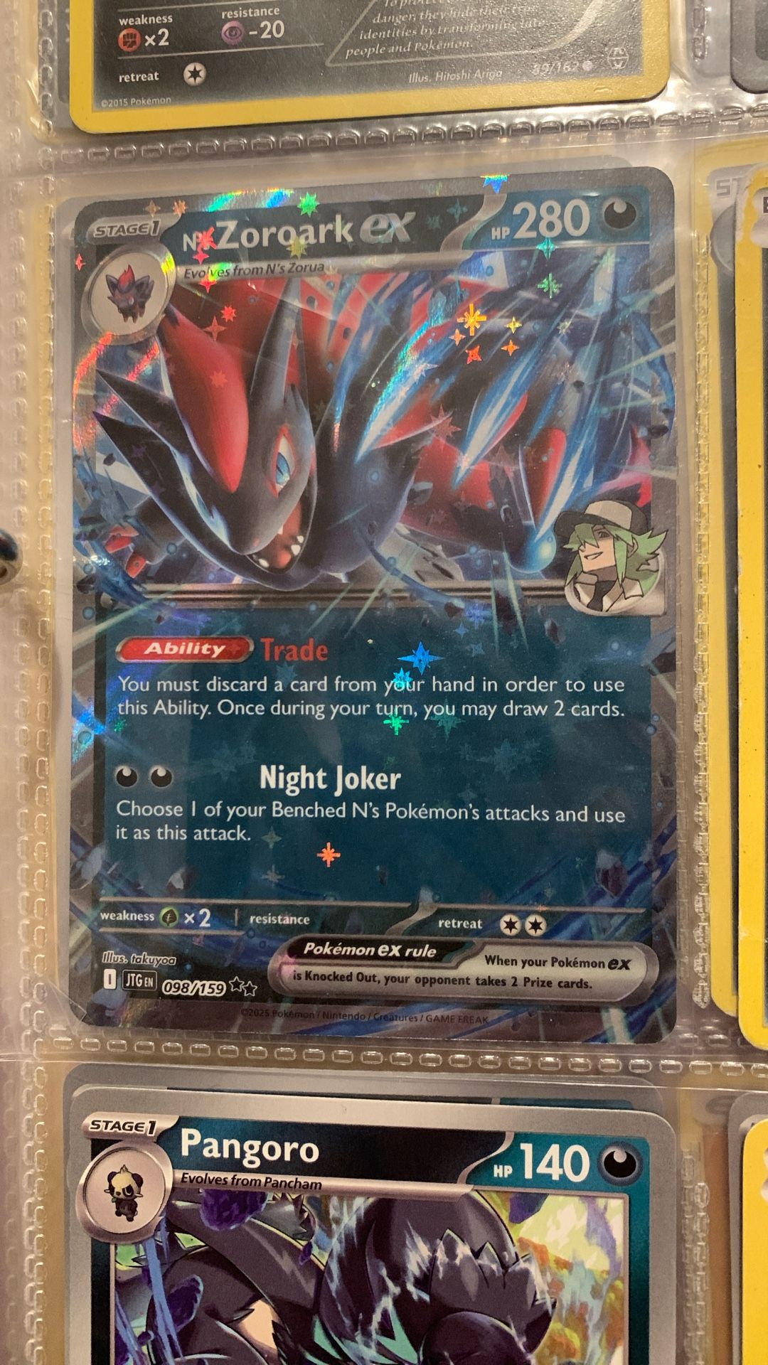 N's Zoroark ex Pokémon It is card number 098/159 from the SV09: Journey Together OBO