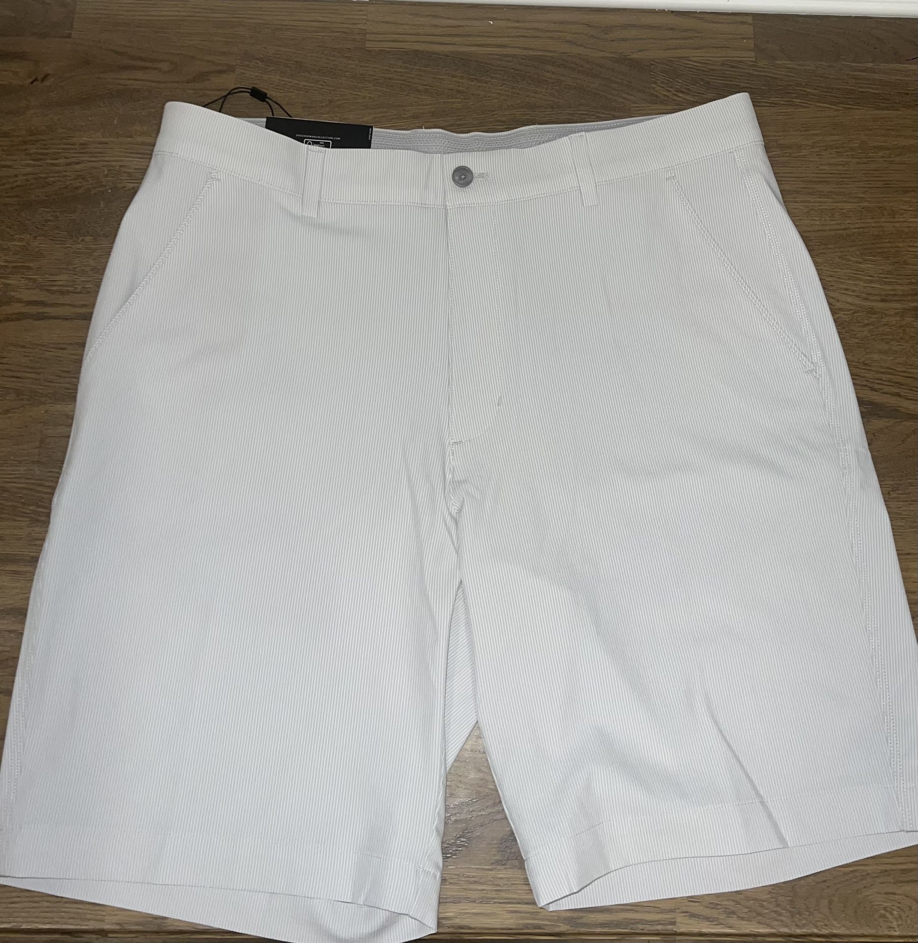 Elevate your business-casual wardrobe with these stylish flexible & stretchy white shorts. Perfect for any occasion, they offer comfort and a sleek look. Waist size - 32. Can fit smaller waists with belt assistance. Brand new, never worn with tags (Greg Norman Collection).