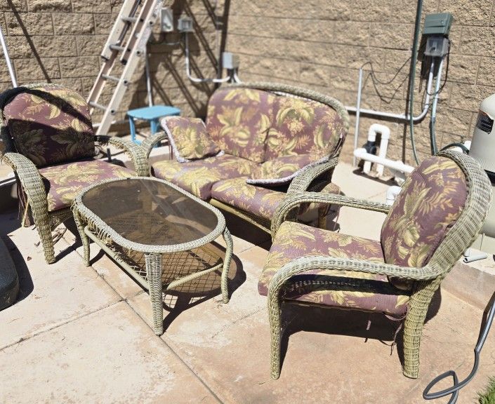 Free! Well used comfy patio set. Needs some of the nylon brading re done, but still has some life in it! Pick up with a truck or vanvin Clairemont/Bay Park. Please text me at (contact info removed)...the Offer up message app isn't working!