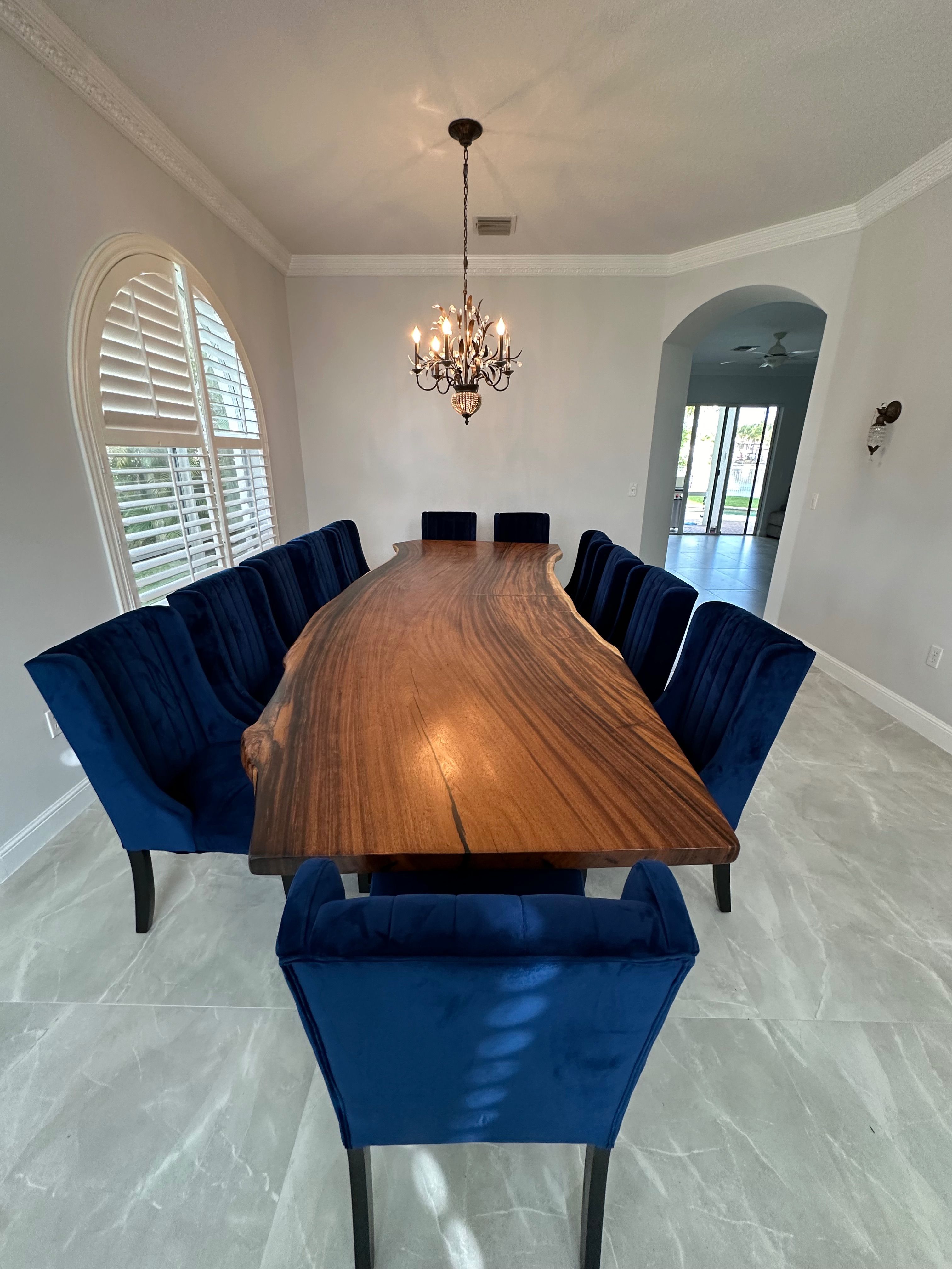 Hello, Come by our showroom to custom build your piece today. We do it all..... Dining Tables, Countertops, Kitchen Islands, Floating Shelves, Conferences Tables, Bar Tops and much more! If you can not come by we offer virtual appointments. All of our exotic hardwoods have been kiln dried, fed through a wide belt sander at 100 grit and leveled. We sell by the slab at $30 per board foot raw and an additional $20-$50+ per board foot to finish. Everything is customizable... message for quote ! 👌 All of the photos in the AD are examples of previous projects we have completed. Ask about our epoxy resin work! We specialize in river tables. Thank you, Exotic Live Edge Slabs Veteran Owned and Family Operated! We are located at 700 NE 42nd St Deerfield Beach, FL 33064 954-851-4988 Mon-Sat 8am-3pm www.exoticliveedgeslabs.com