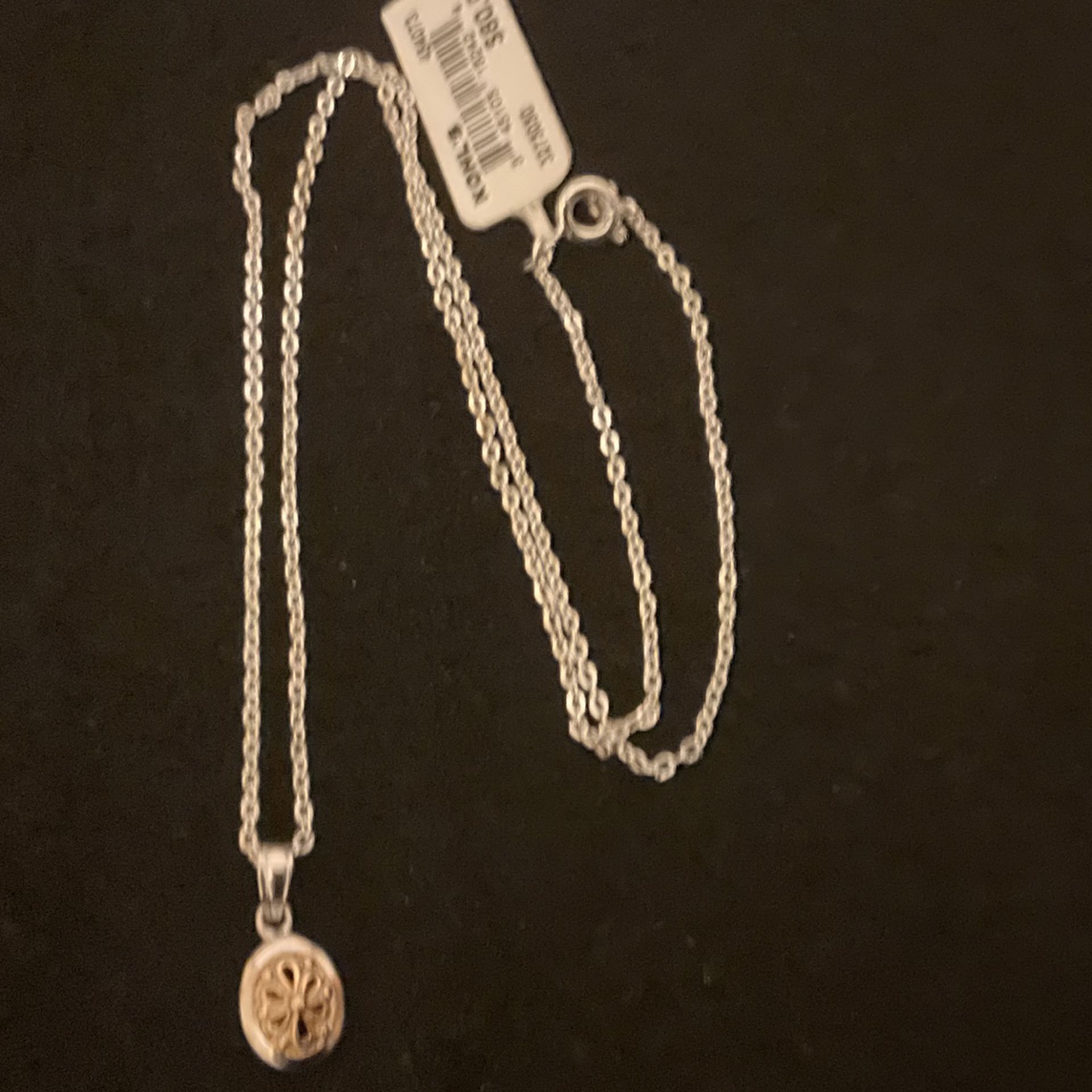 18” Silver Plated Necklace With Silver And Gold Pendant