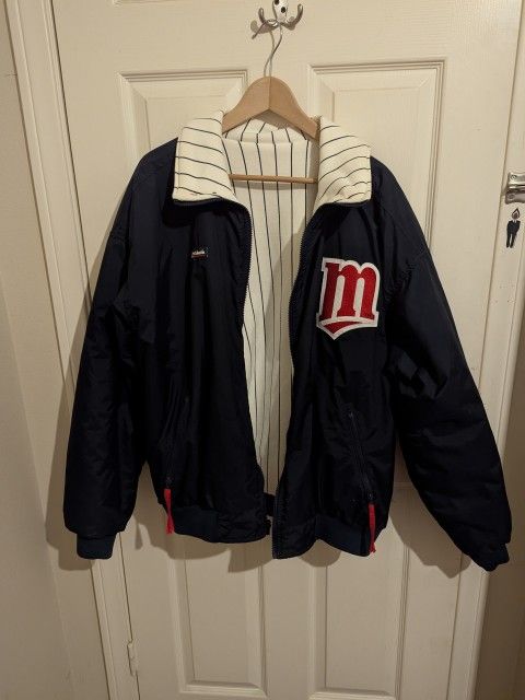 Minnesota twins genuine authentic MLB jacket. Interchangeable from blue to white and red with pin stripes. Size XL. Never worn even once has just been hanging in closet.