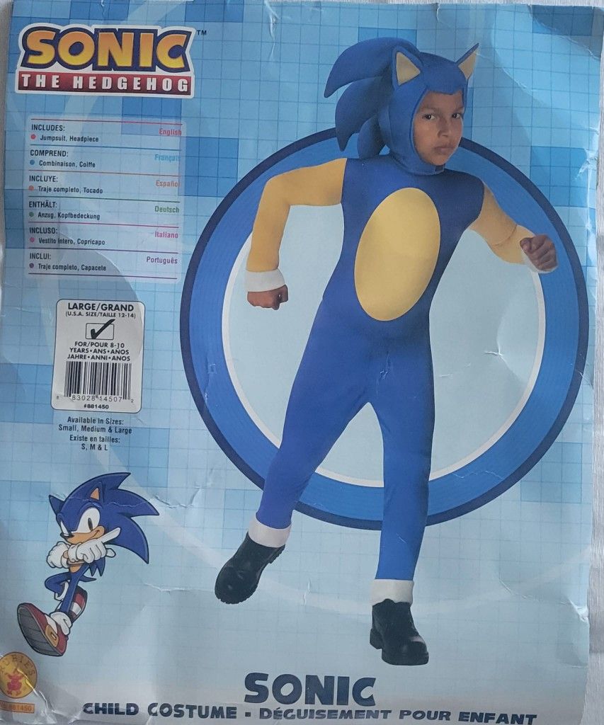 Sonic The Hedgehog costume. Large 8-10 years