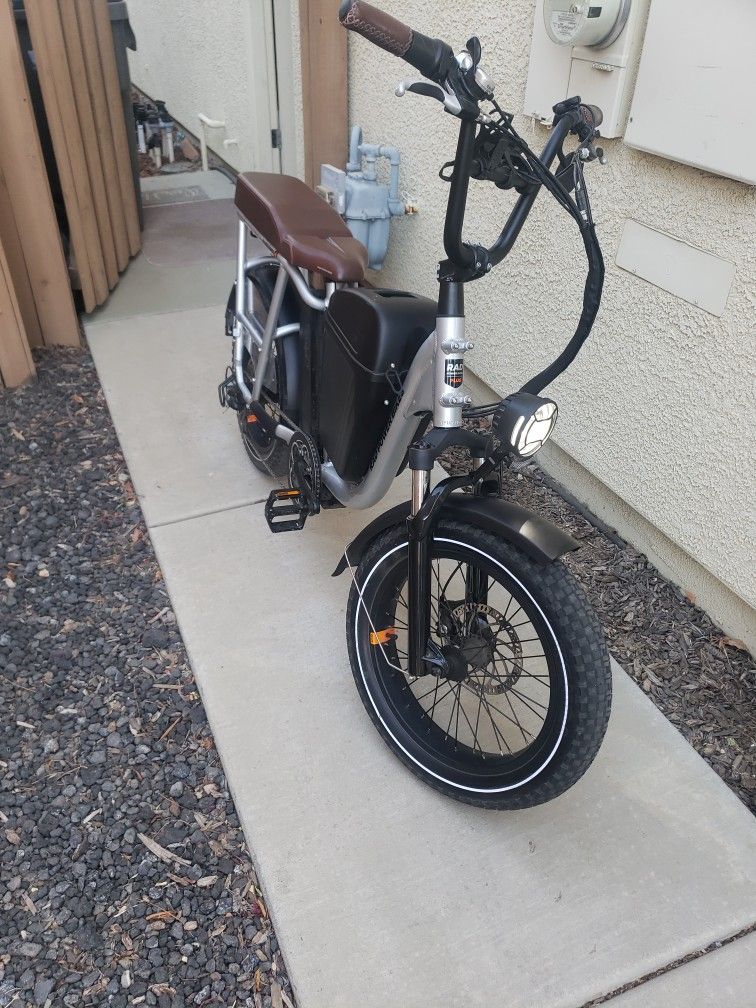 Great bike. 1156 miles on it. Shimano 7 speed. 25 mph max and about 45+mile range. 750w motor. Front shocks. Passenger ready. Large rack for the back. Upgraded headlight. Tool kit and bike cover. Lots of extras.