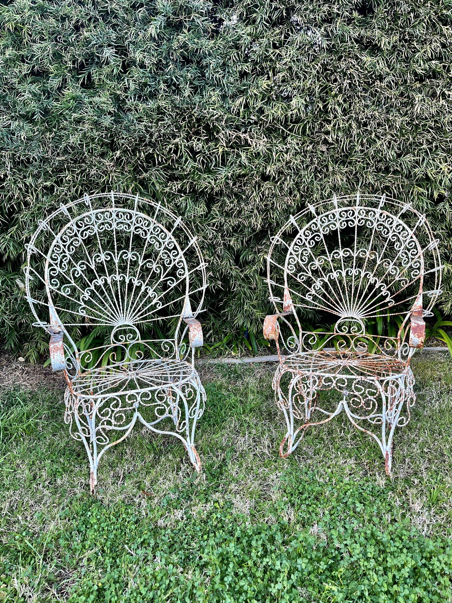 These chairs are spectacular and have graced our garden for a long time. They speak to a time when things were made to last! They look gorgeous in the yard and also make a fantastic photography prop! Original chippy paint and iron work.
