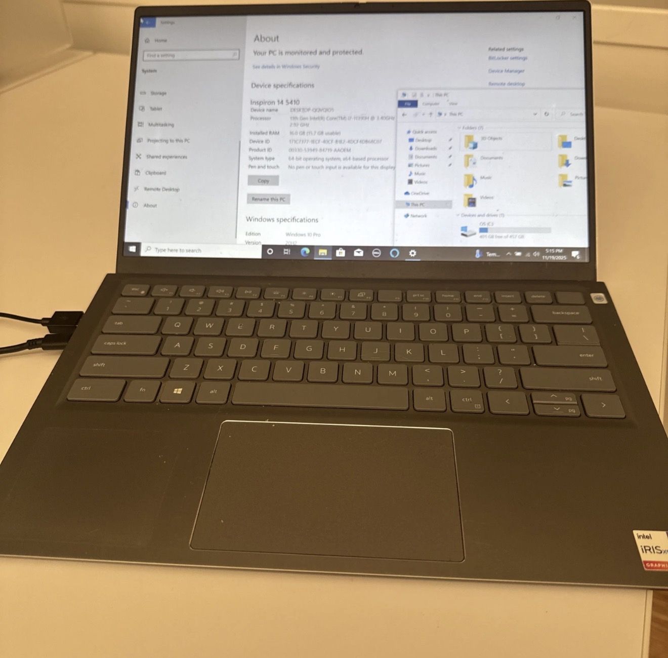 Dell laptop 14, 16GB RAM, 512GB storage, intel i7