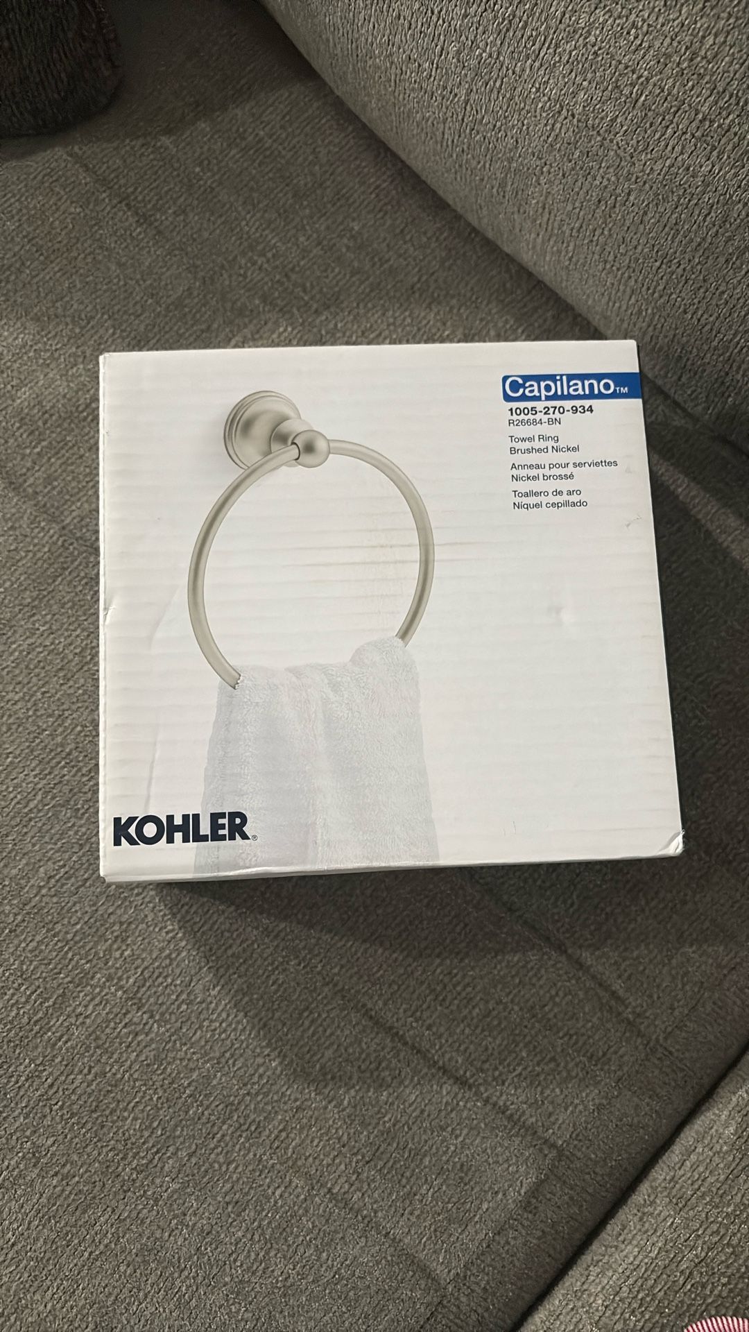 Towel ring, brushed nickel. Comes with everything to mount $20firm