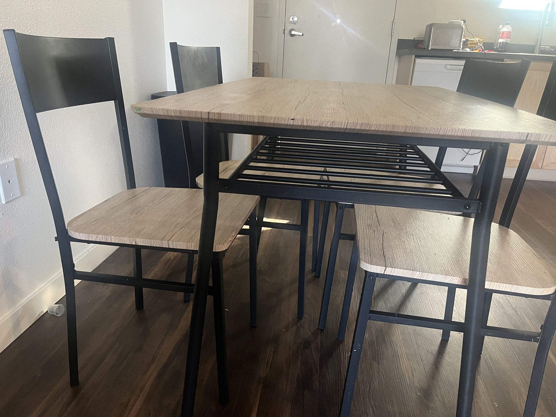 Good condition. Does have a stain from painting on the table I wasn't able to fully remove.