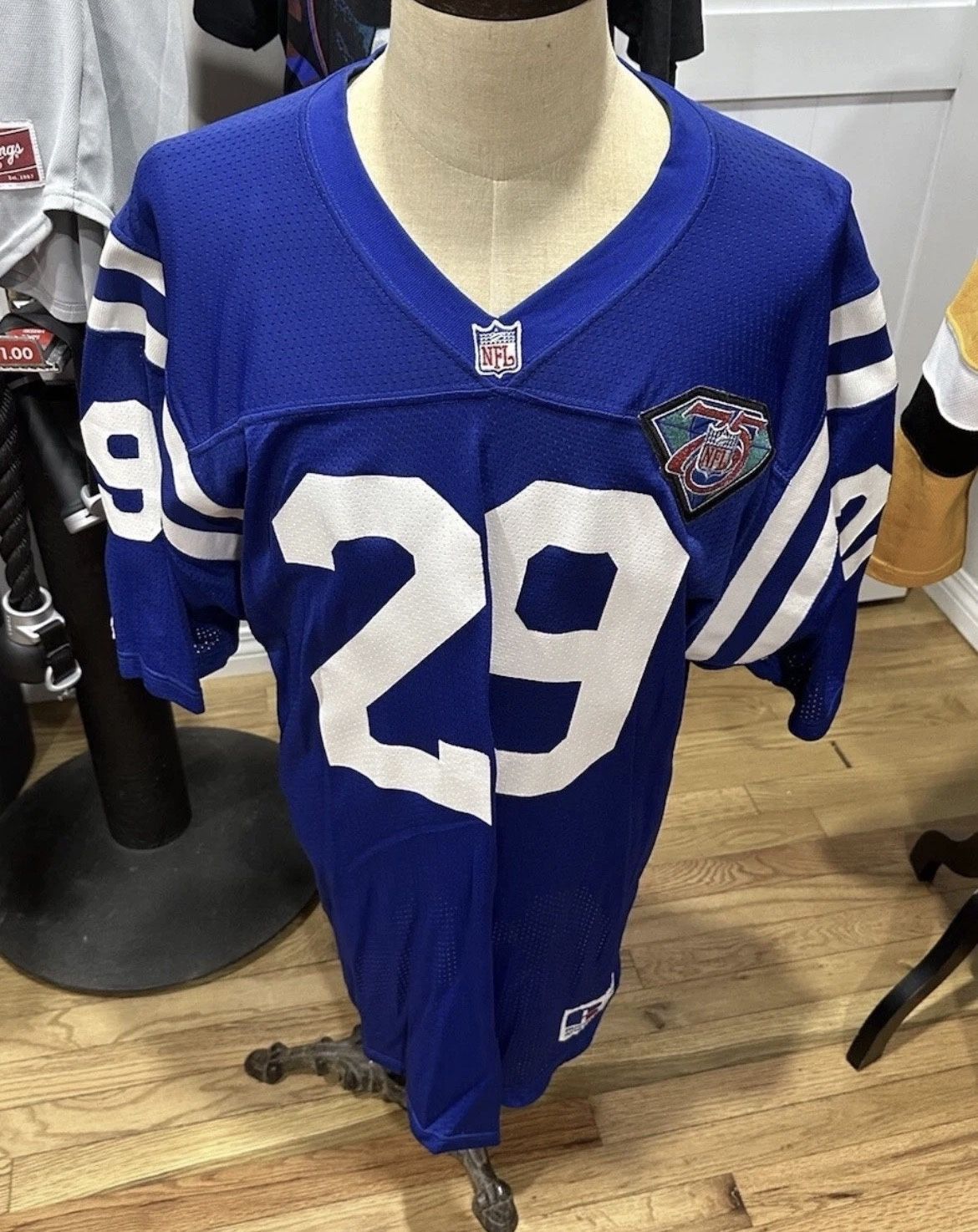 Will ship upon request. 1994 Jason Belser Russell Athletic Indianapolis Colts 75th Jersey Mens 52 NICE COLOR AND GRAPHICS NO RIPS OR STAINS SHOWS SOME SIGNS OF AGE PIT TO PIT 24” LENGTH 35” PLEASE LOOK AT MEASUREMENTS BEFORE PURCHASING TO MAKE SURE OF FIT PLEASE SEE ALL THE PICS tFOR ANY CONDITION ISSUE ALSO FEEL FREE TO CONTACT US WITH ANY QUESTIONS OR CONCERN WE EXPECT PAYMENT WITHIN 48 HOURS, PLEASE CONTACT US BEFORE YOU m BUY IF YOU NEED OR WANT MORE TIME TO PAYMENT of IF YOU BUY A ITEM ON FRIDAY WE DO EVERYTHING WE CAN TO SHIP THE JERSEY OUT ON SATURDAY MORNING BEFORE THE POST OFFICE CLOSES.