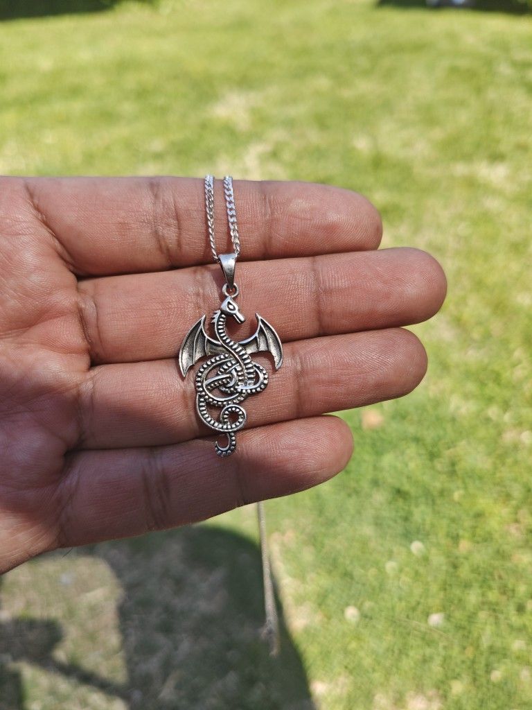 Dragon Pendant Charm With with A Thin Italian Chain