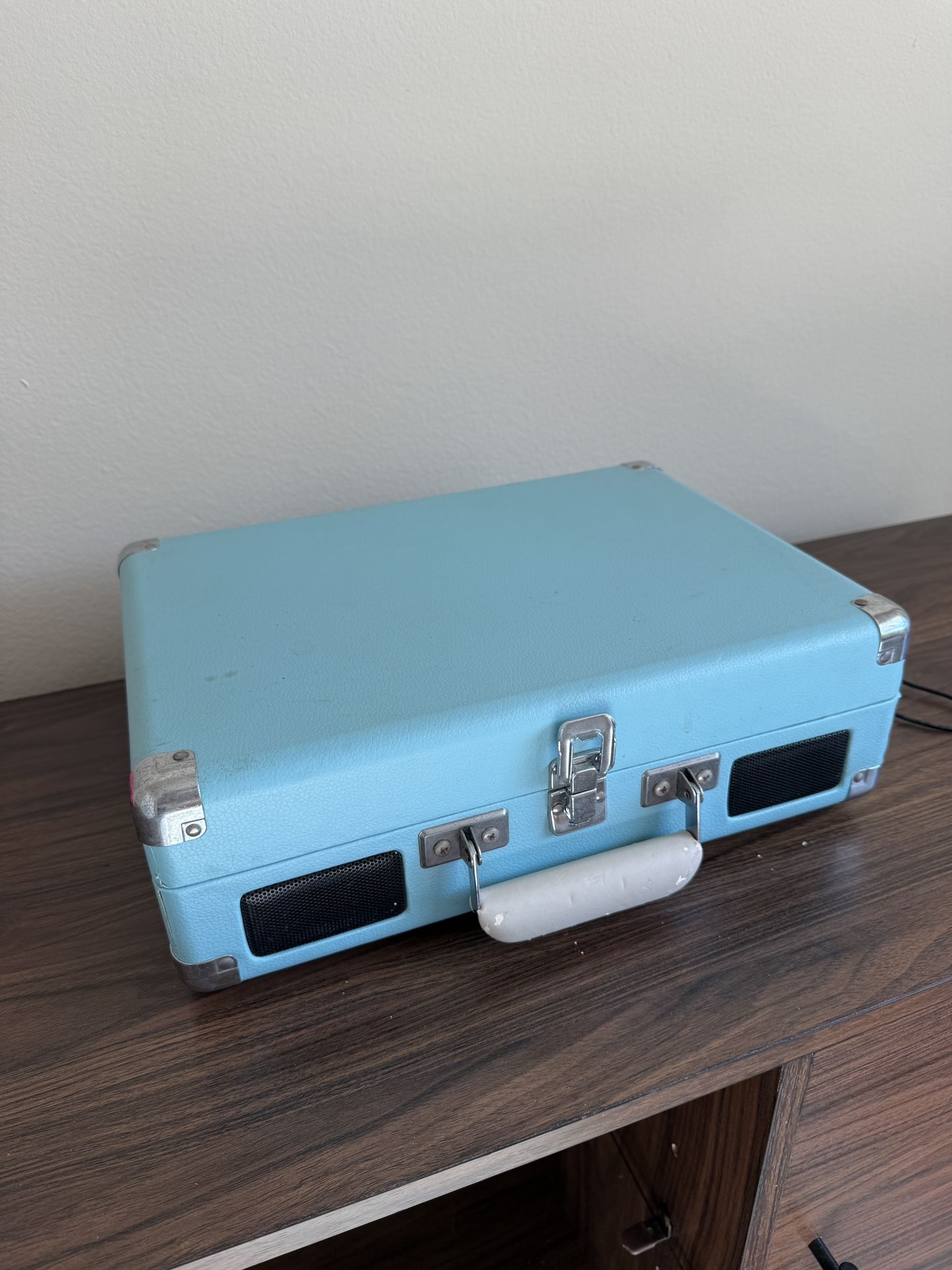 THREE-SPEED BELT-DRIVE TURNTABLE: Plays 33 1/3, 45, and 78 RPM records. Use the cueing lever to lower the needle and fine-tune playback with adjustable pitch control. • BLUETOOTH RECORD PLAYER: Bluetooth connectivity lets you easily play your albums through wireless speakers or stream your music to the vinyl record player's built-in speakers. • UPGRADED SOUND & CONNECTION: Dynamic full-range stereo speakers with aux input. Use the RCA output to connect to your stereo system or the headphone jack for private listening. • CONVENIENCE AND PORTABILITY: Setup is easy and will have you enjoying your vinyl in minutes. Take your tunes anywhere with the portable suitcase design and carry handle.