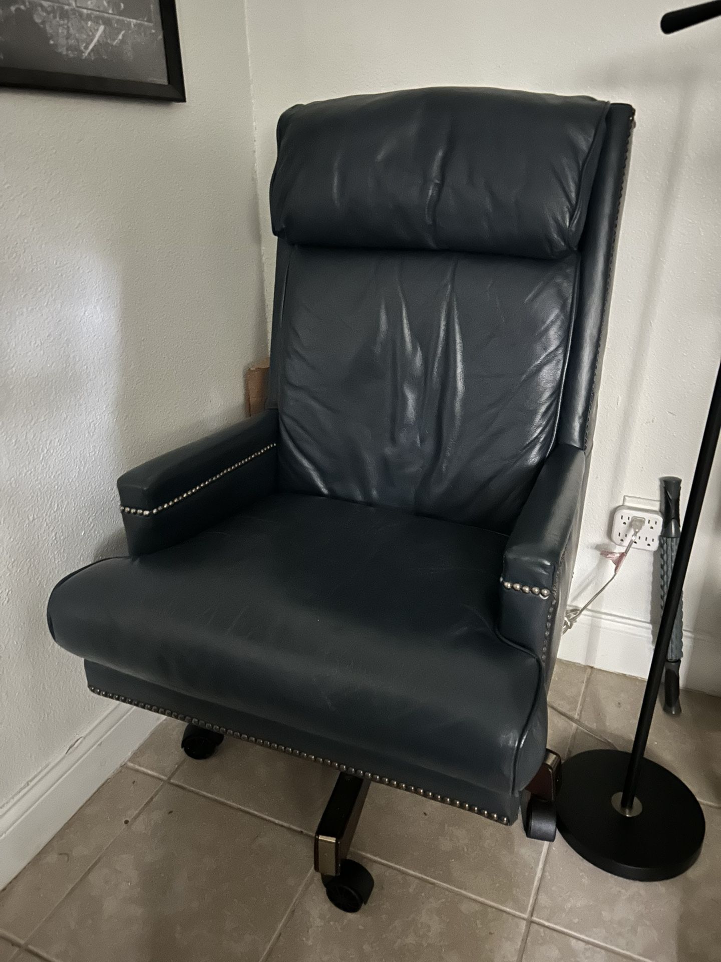 I have a top grain pebble blue leather office chair made by Classic.