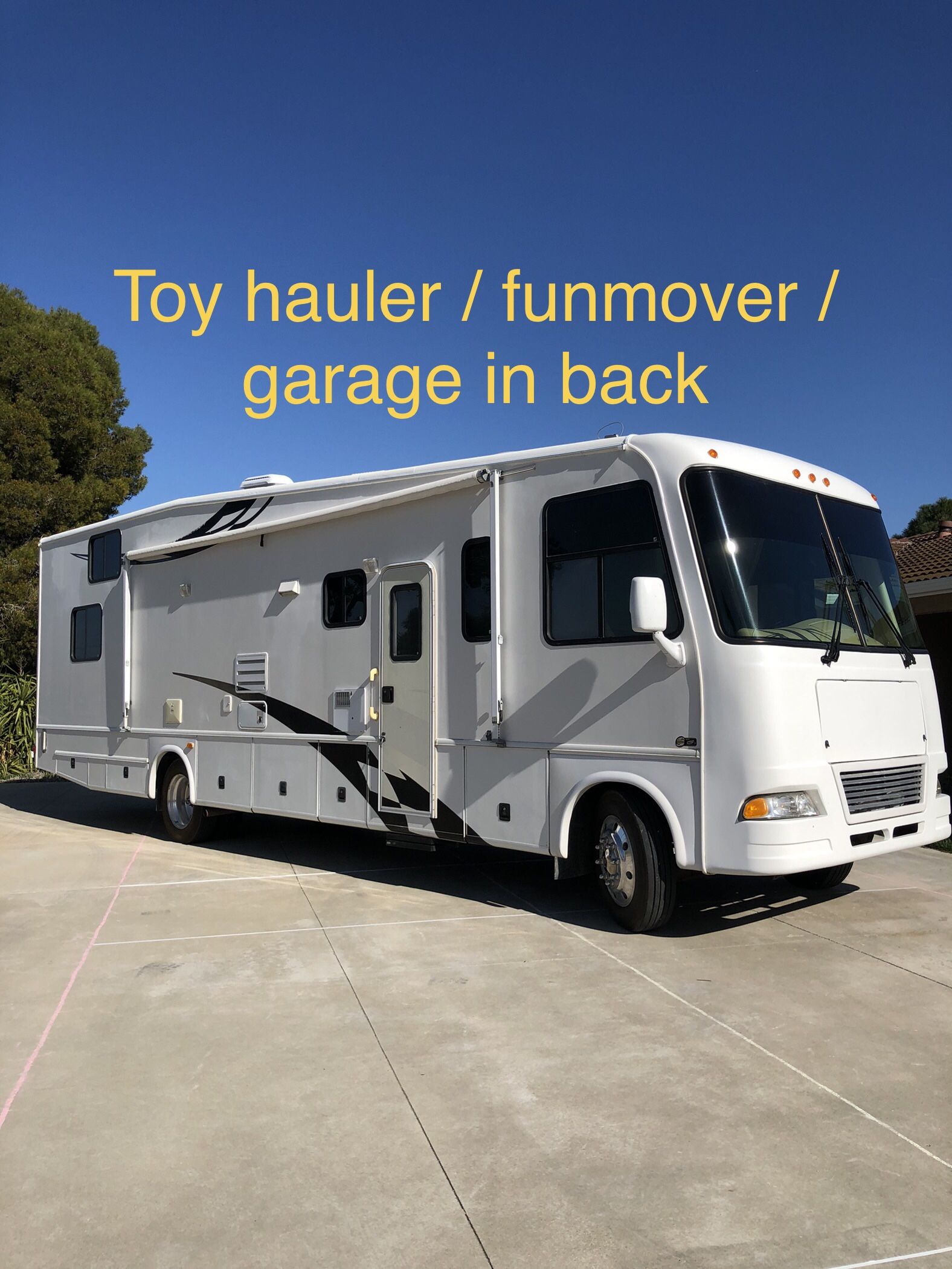 2007 Damon 37’ outlaw workhorse w24 toy hauler motor home fun mover, funmover. 8.1L V8 OHV 16V. Just under 50k miles. Generator has 1,465 hours. Garage is 10’ long and 8’ wide. Brand new complete roof which was replaced recently after hitting a low tree branch. One pop out and awning. Runs great recently smogged and engine oil changed. $48k obo
