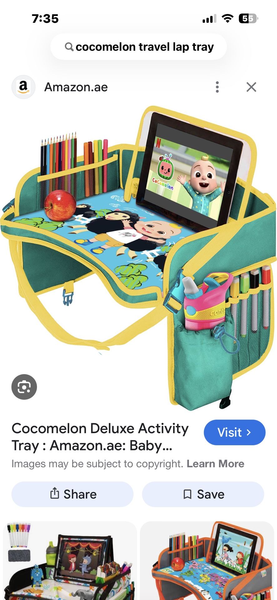 Portable coco melon activities center car desk that attach to the back of the seat holds a tablet and all kinds of accessories bought it brand new never used it
