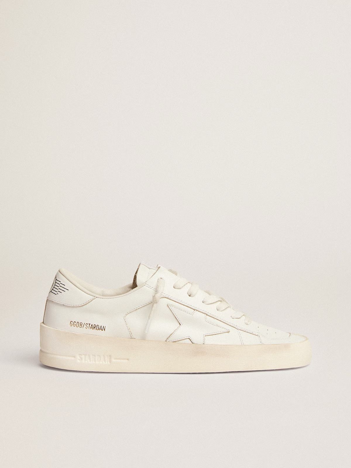 GOLDEN GOOSE - 38 Women's Stardan in total white leather -optic white / with box Stardan sneakers are inspired by 90s basketball icons: the strong bond with the sense of nostalgia is seen in their retro look, hinting at past memories in the same way as an old postcard does. This minimalist women’s version is made of total white leather, a style to wear everyday thanks to its decidedly versatile look.