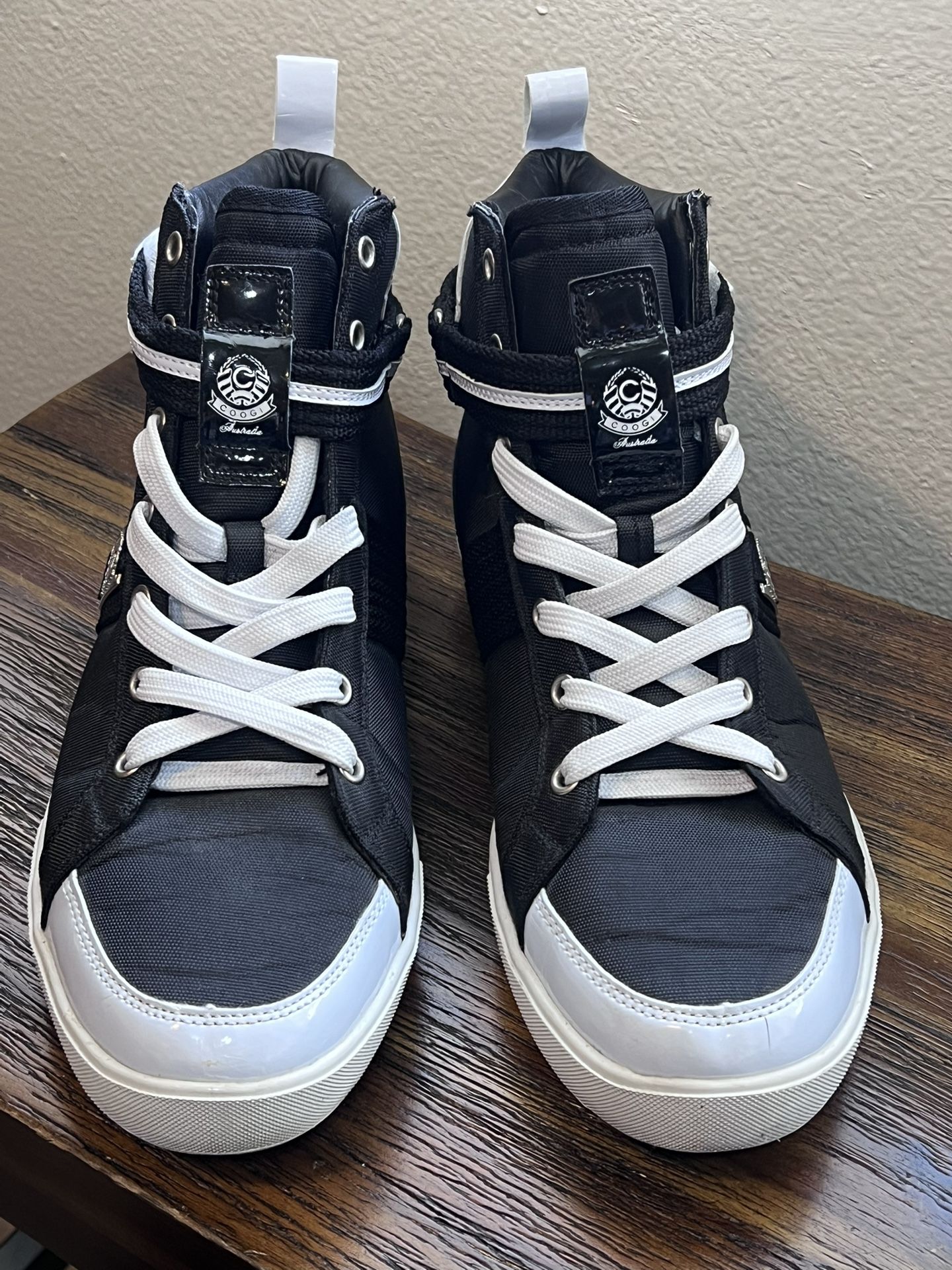 **Coogi Shoes – Excellent Condition** **Price:** **Style Number:** CM1348 **Color:** Black **Size:** - USA: 10 - UK: 9 - EUR: 44 - JP: 28.0 Elevate your streetwear game with these stylish Coogi shoes! Featuring a textile upper and rubber sole, these shoes are perfect for casual outings or dance sessions. **Condition:** Excellent – gently worn, well-maintained, and free from any significant flaws. **Details:** - Brand: Coogi - Made in China - Unique design that reflects the bold and vibrant aesthetic of the Coogi brand. **A Bit of History:** Coogi originated in Australia in the 1960s and gained significant fame in the 1980s and 1990s, especially in the U.S. The brand is well-known for its iconic knitwear featuring vibrant colors and intricate patterns, becoming synonymous with hip-hop culture during that era. Coogi shoes embody the same bold aesthetic, appealing to streetwear fans and collectors alike. As the brand has seen a resurgence in popularity, these shoes symbolize a nostalgic connection to the vibrant street culture of the 90s, making them a standout choice for anyone looking to make a statement. Don’t miss out on this chance to own a piece of hip-hop culture! Perfect for collectors or anyone looking to add some flair to their shoe collection. These belonged to my son & he only wore them a few times.