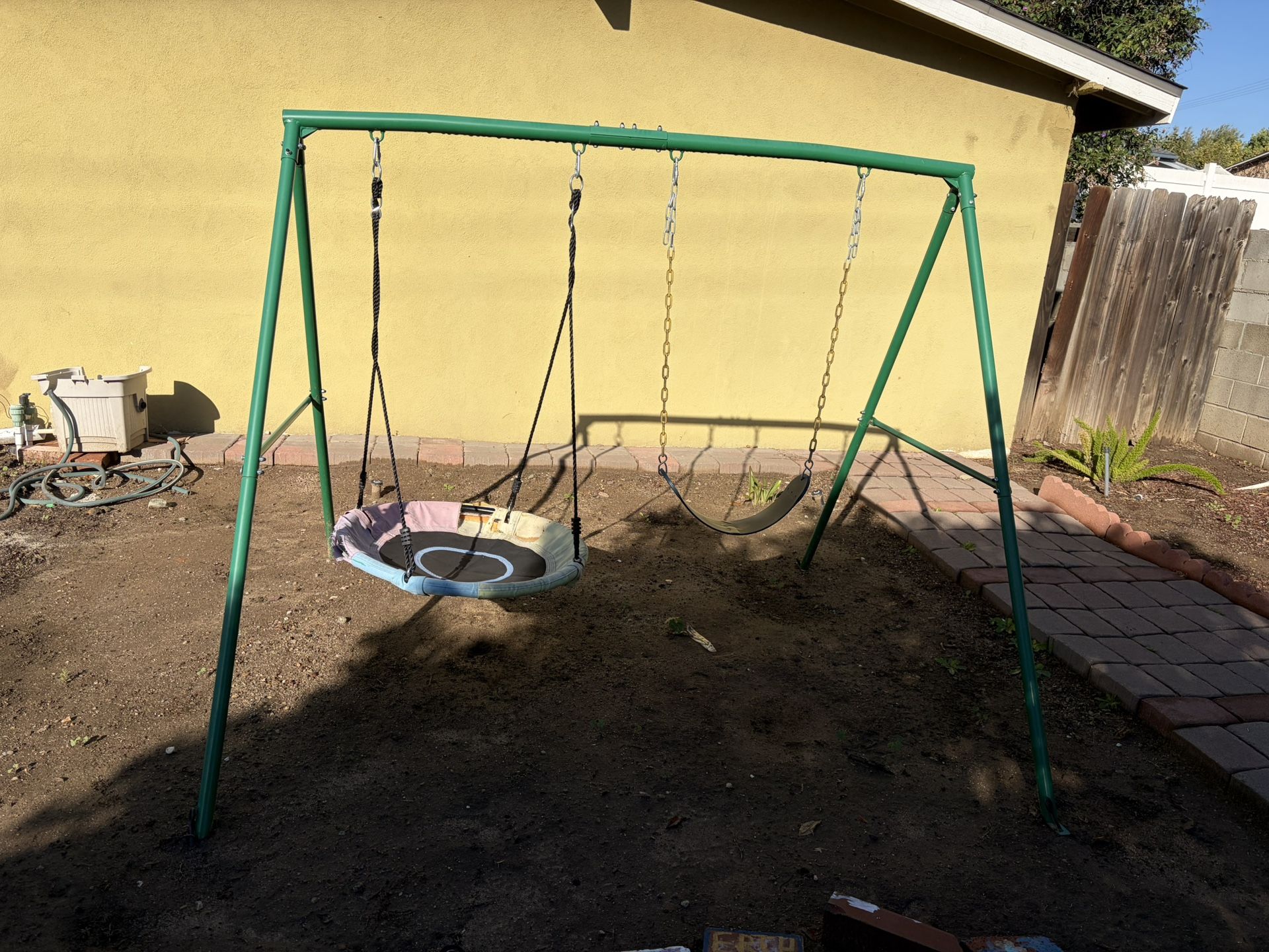 Saucer swing needs to be replaced but everything else is in great condition! We need it gone by Friday. We can disassemble.