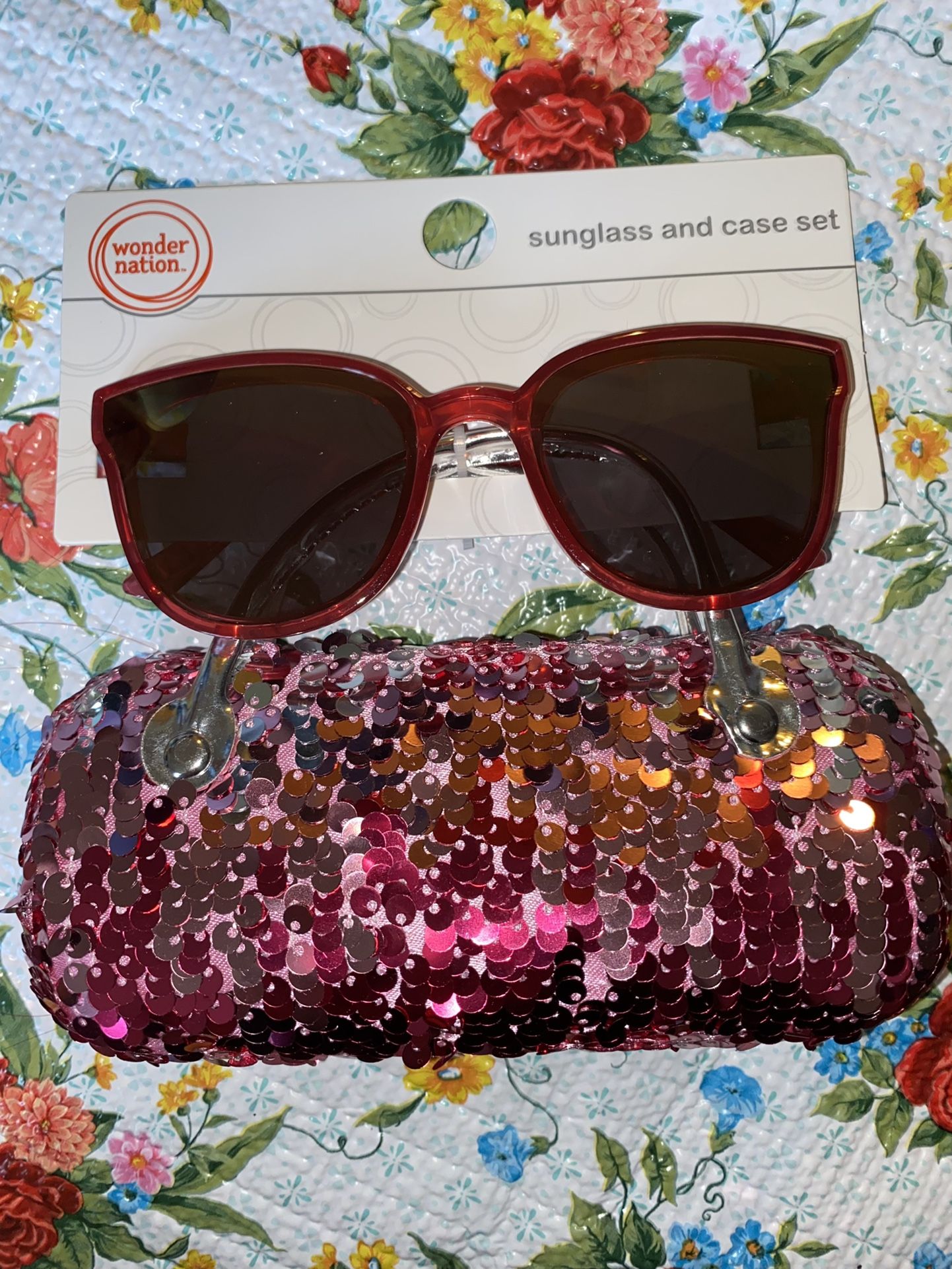 GIRLS RED TRIM SUNGLASSES ๐ถ & SPARLY CASE SET