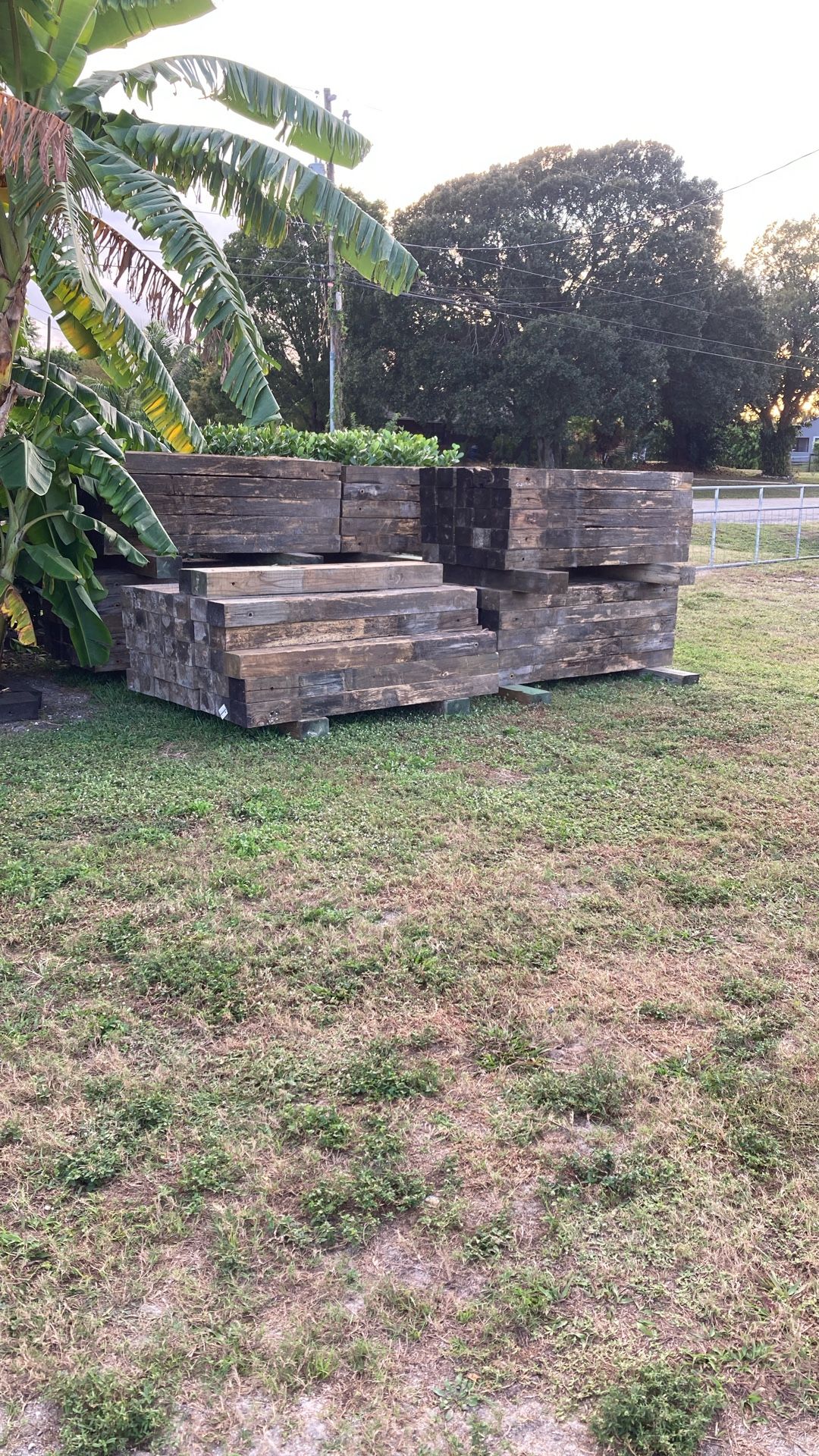 (One dollar each)I have approximately 200 6‘6“ long 6 inches wide 8 inches thick Guard Rail Wood the metals are a little rotted could used for a backboard for a target practice. You could also cut the ends off and use it for cribbing skies the limit first come first serve in Loxahatchee have a machine on site to load.