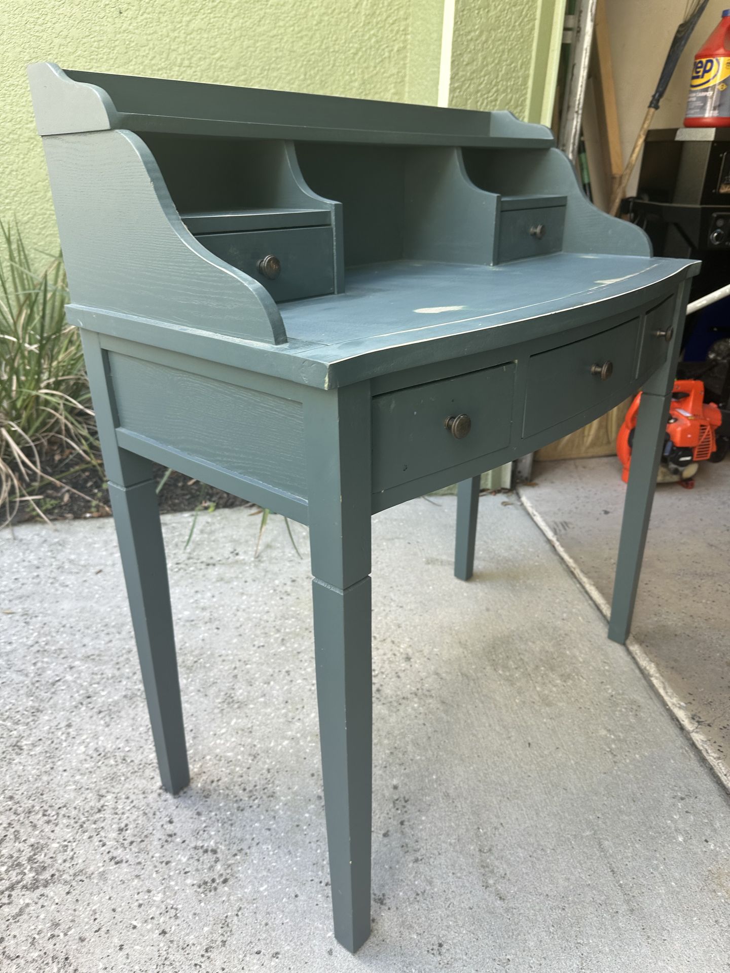 Strong all wood desk with 5 drawers. Could be weathered or repainted.